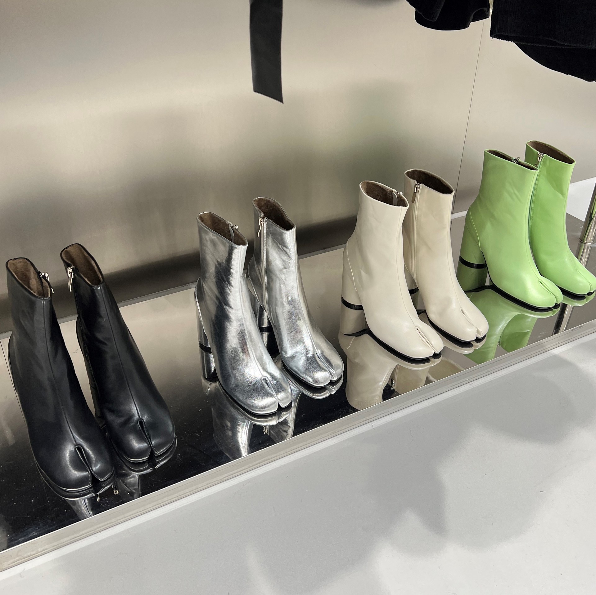 Color: off white, silver, black, green