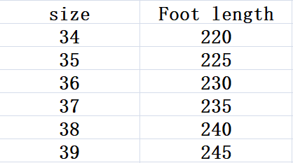 Sizes: 34, 35, 36, 37, 38, 39