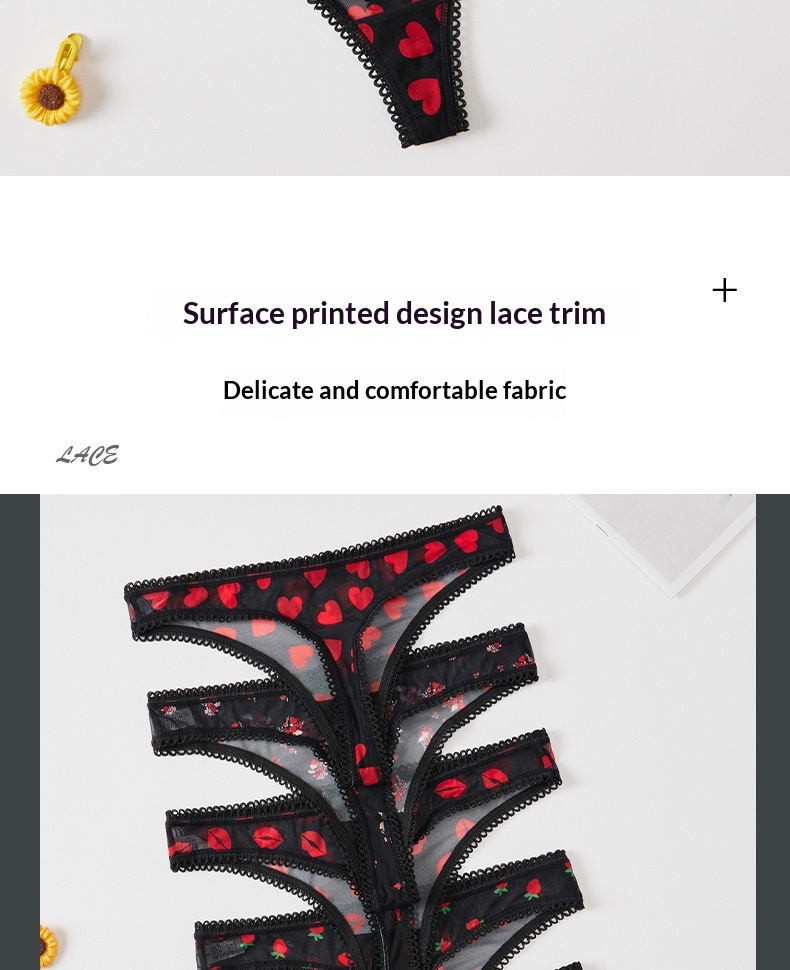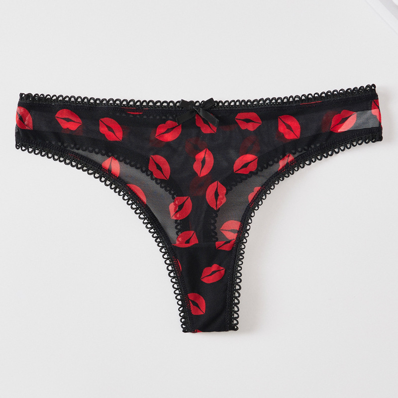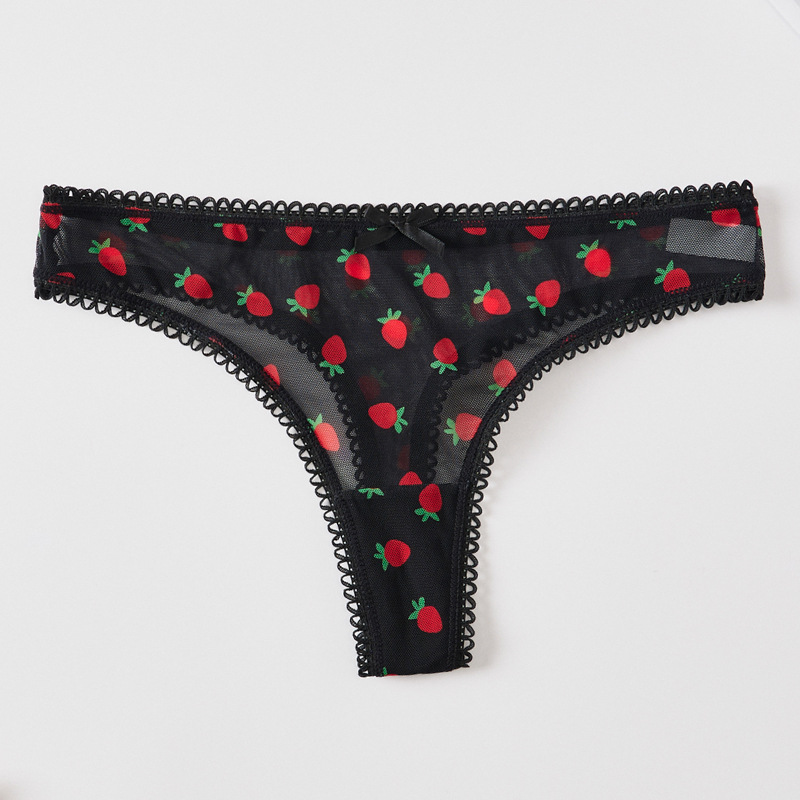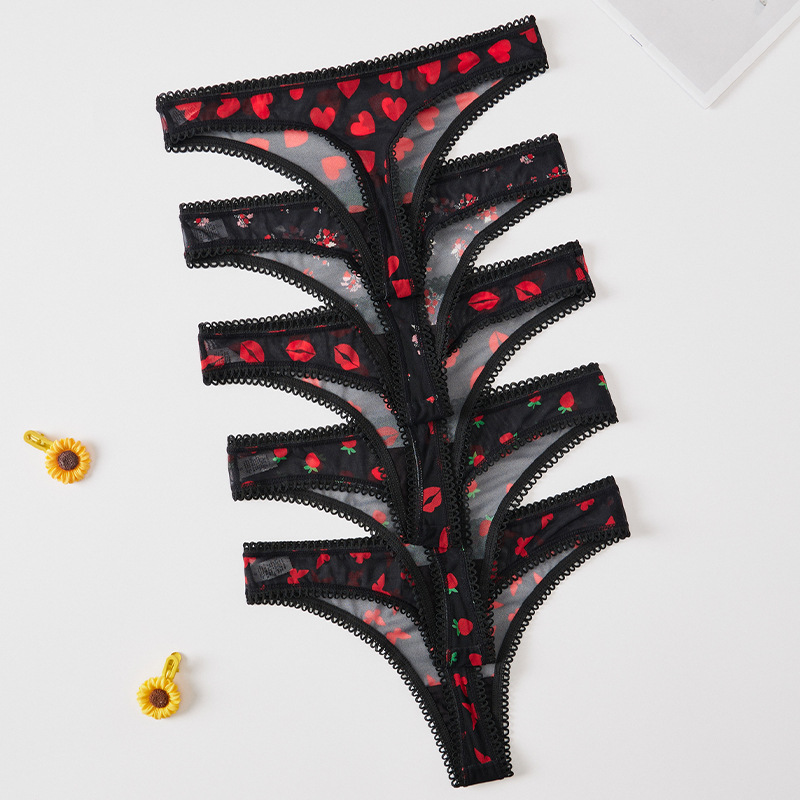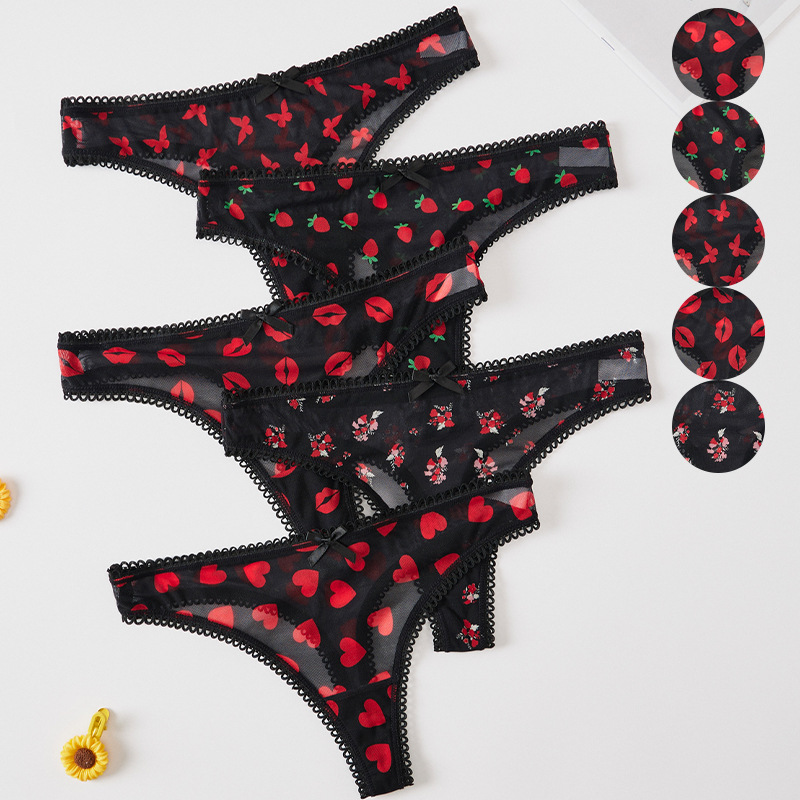 Womens Thong Seamless Breathable Mesh Printed Sexy Underwear