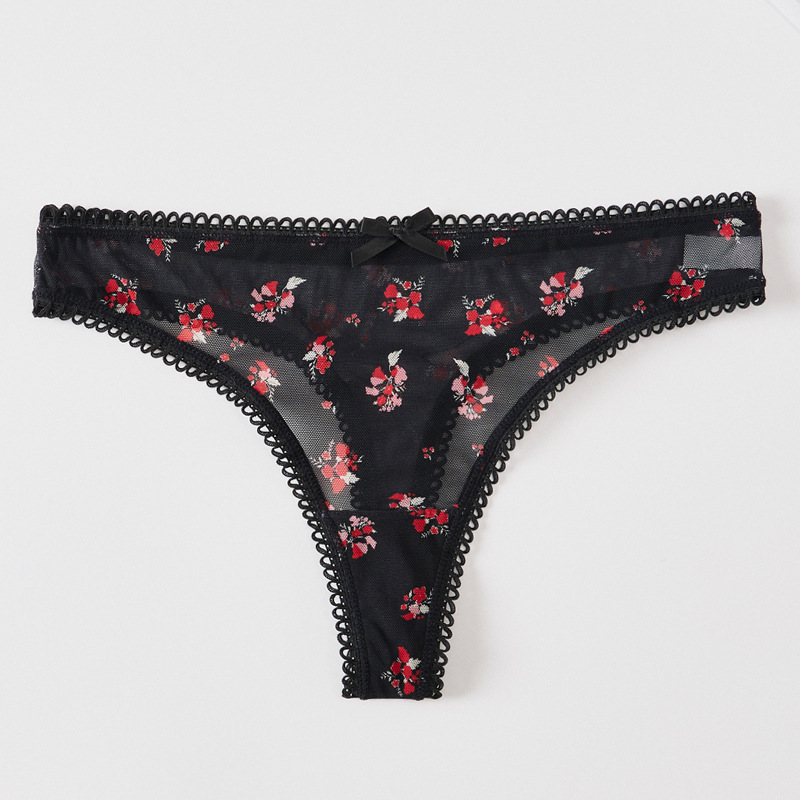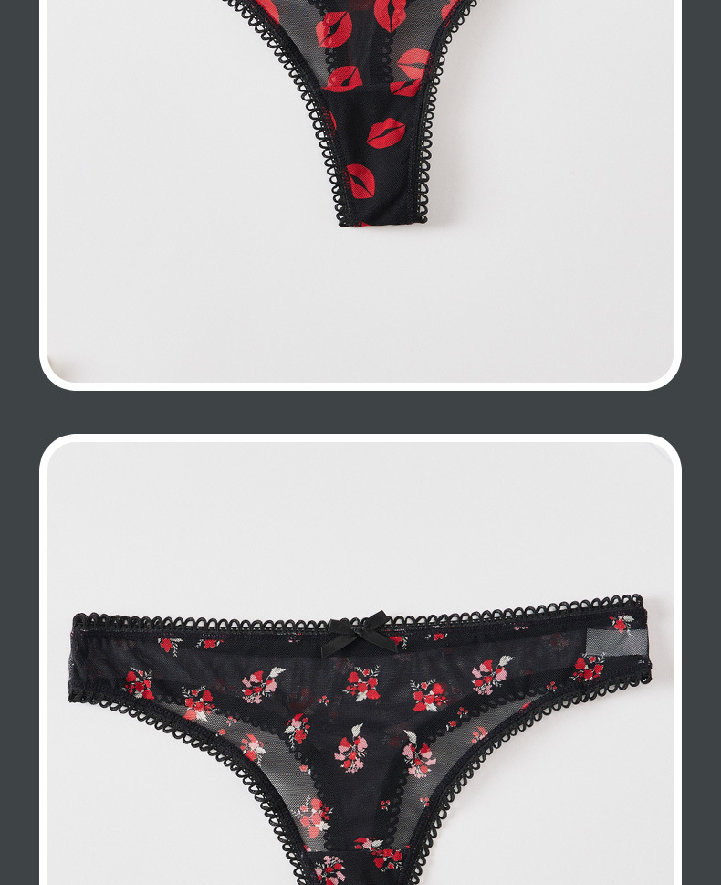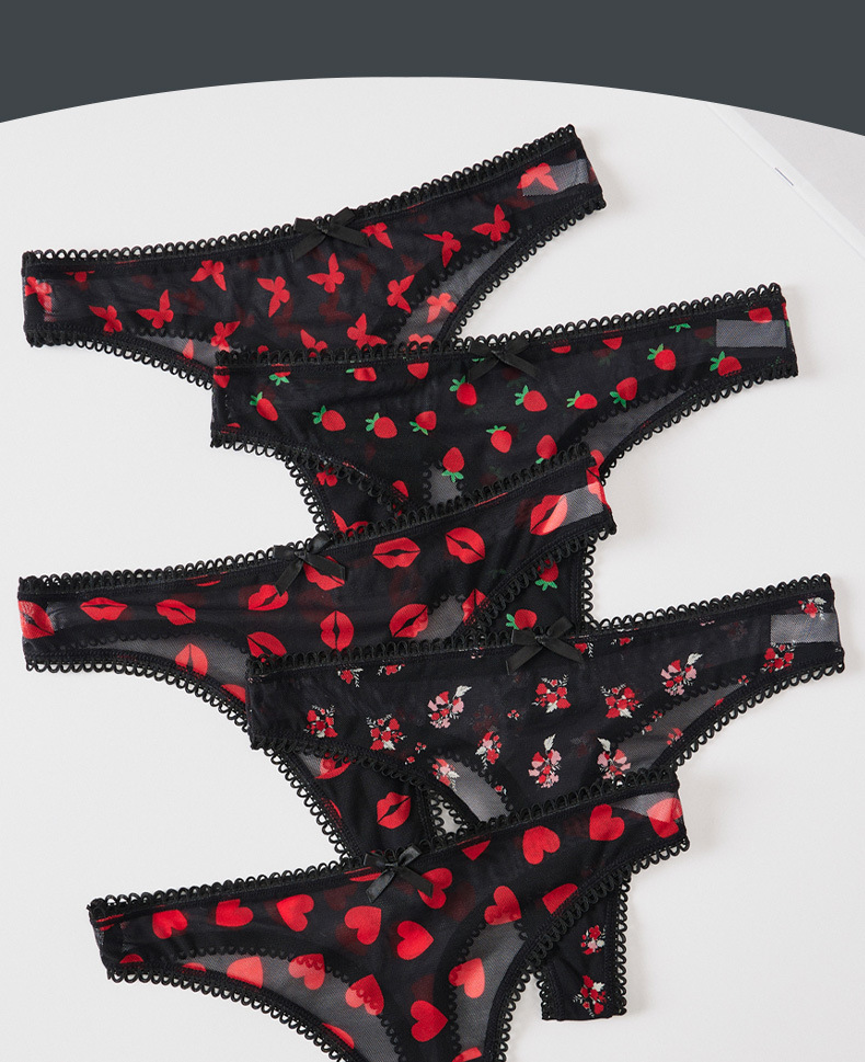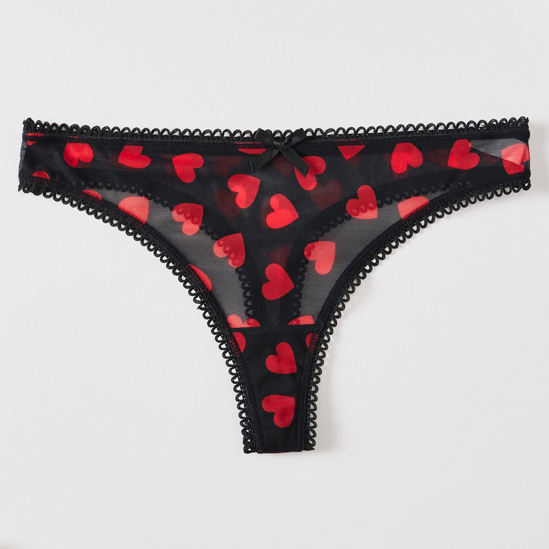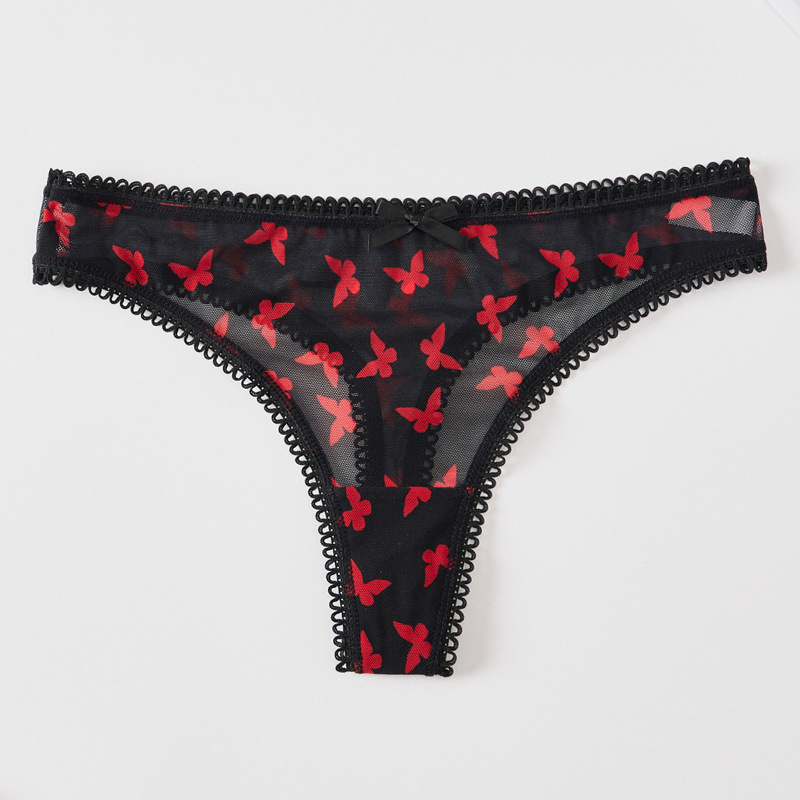 Womens Thong Seamless Breathable Mesh Printed Sexy Underwear