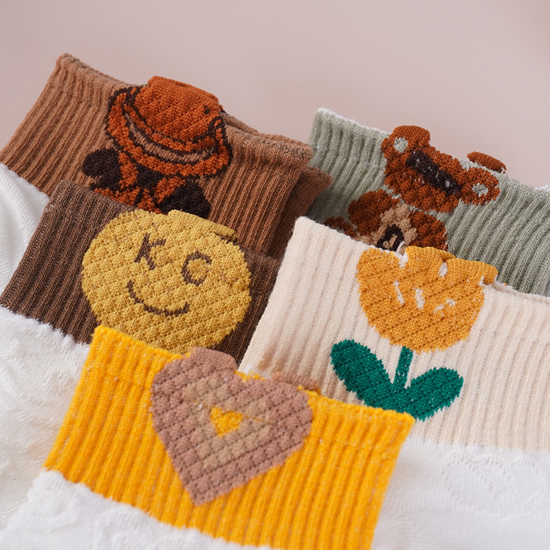 Color: yellow edge heart-shaped, beige small flower, gray Bear, Brown smiling face, brown big nose, five pairs of mixed
