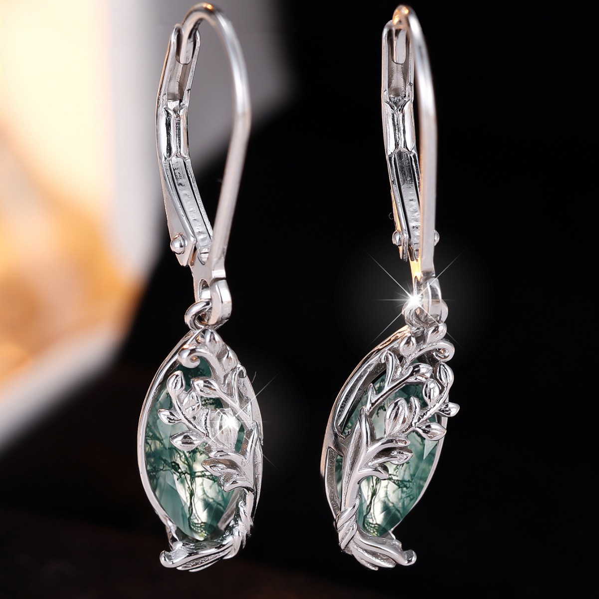 Product information:Color: Platinum water plants agate Applicable population: Female Material: Silver Shape: Leaves Style: Casual