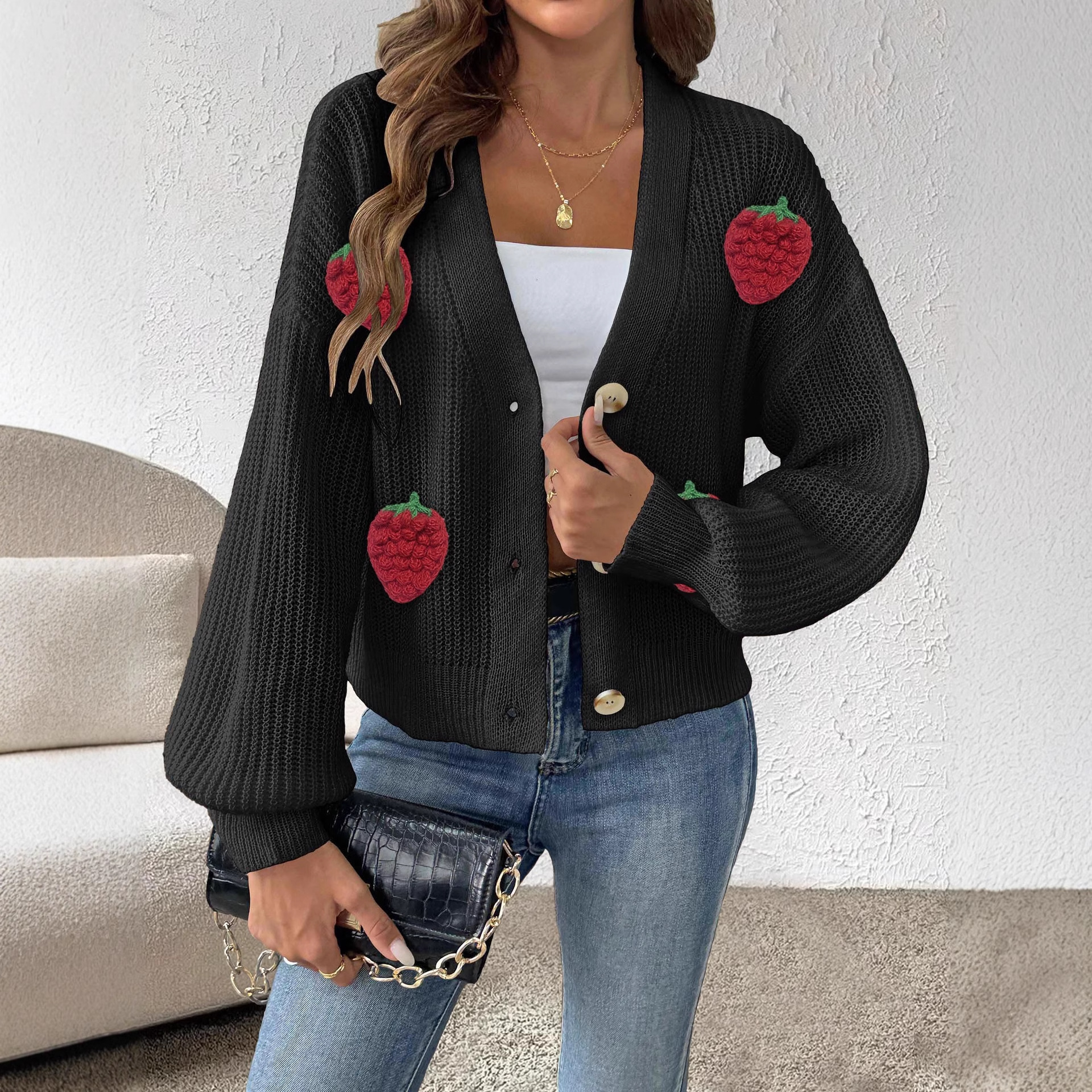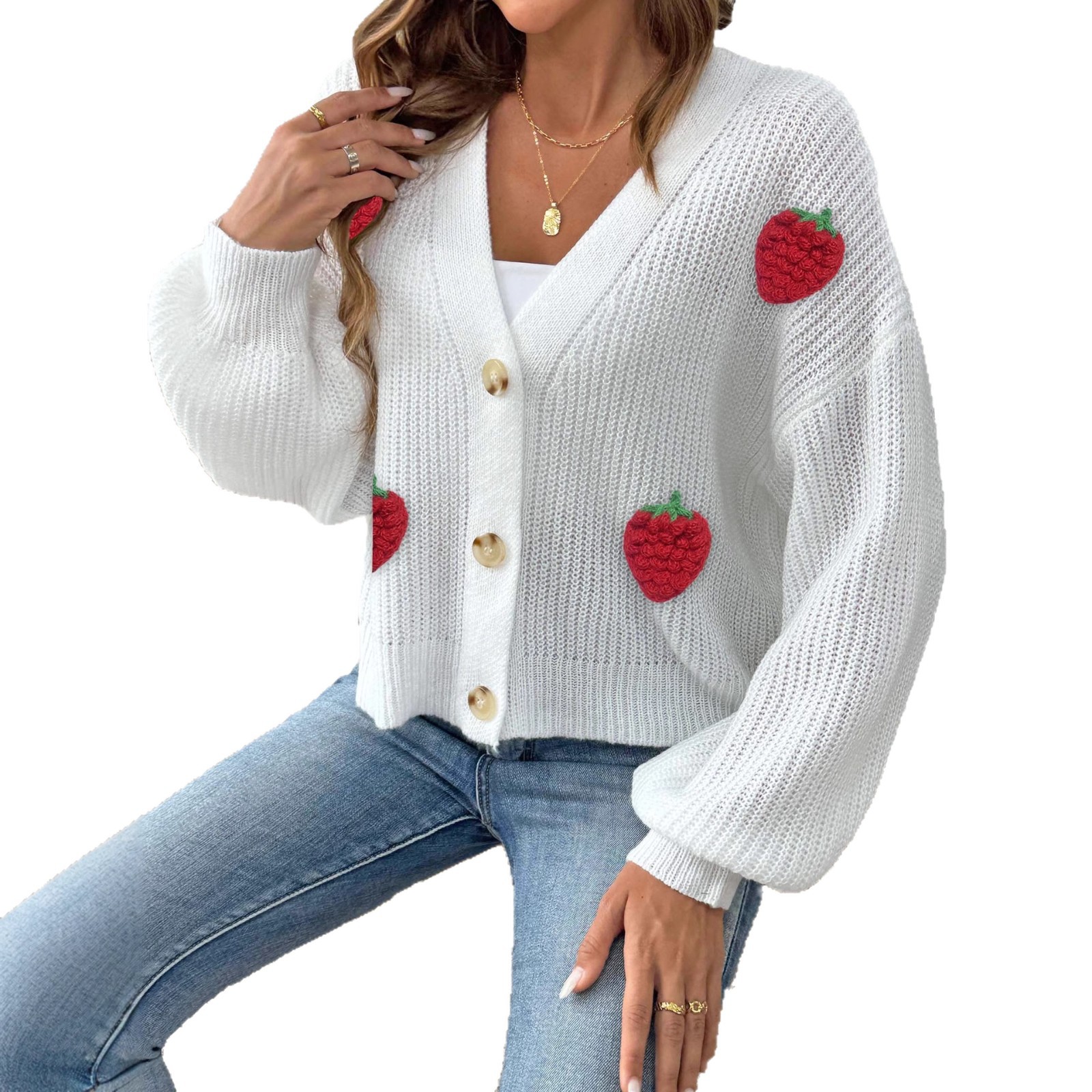 Women's Three-dimensional Strawberry Stitching Cute Cardigan Button Coat