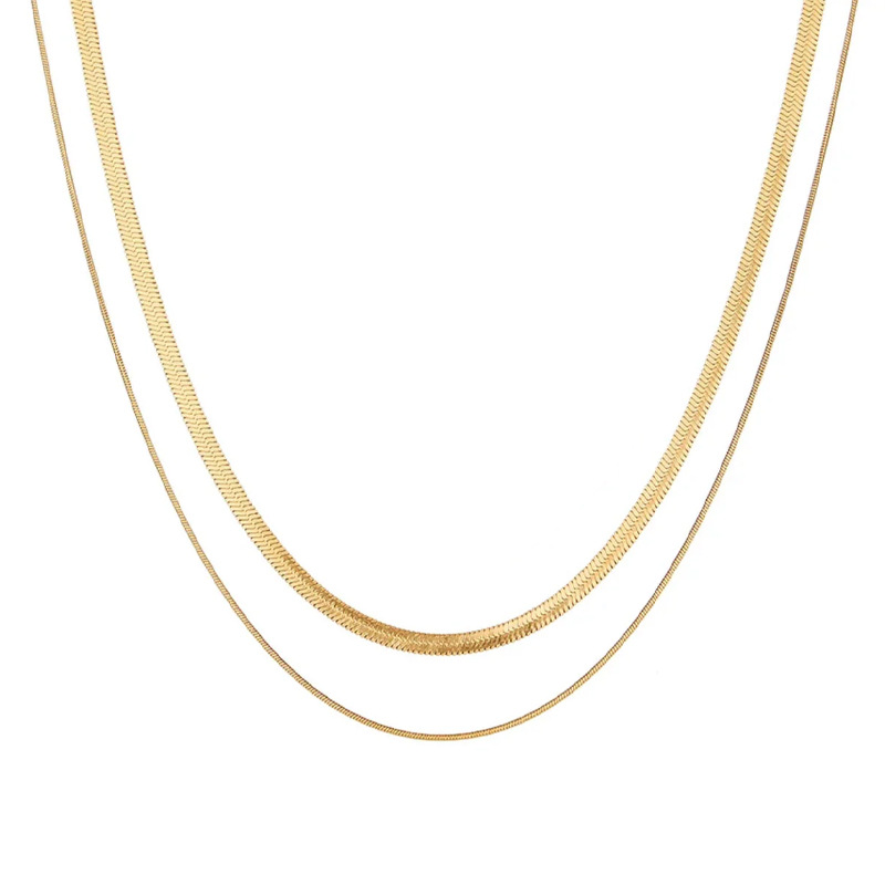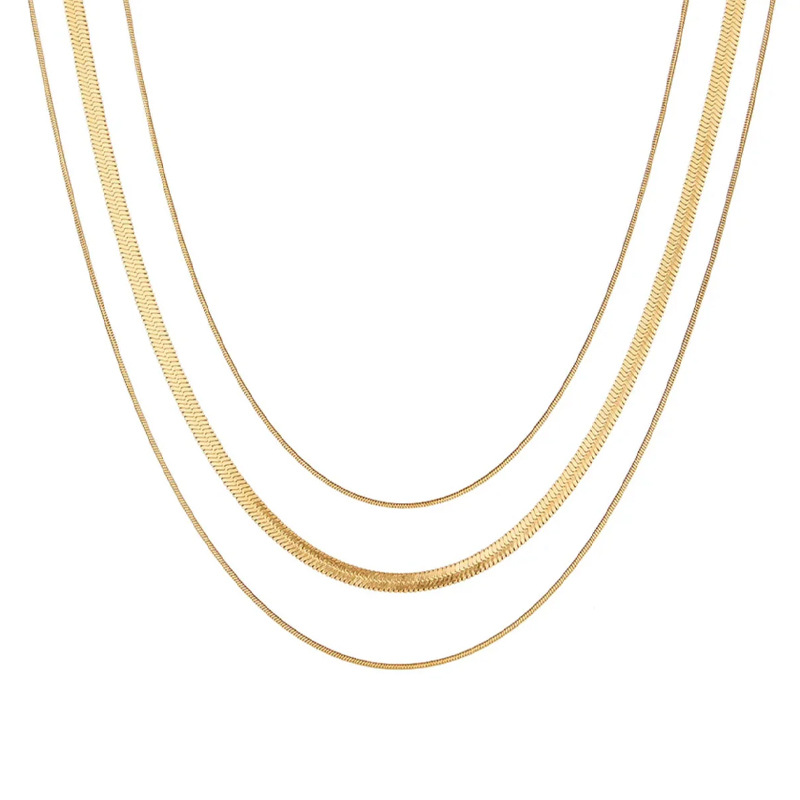 Colors: Three-Tier Stacked Snake Chain Necklace [Gold], Three-Tier Stacked Snake Chain Necklace [Silver], Two-Tier Stacked Snake Chain Necklace [Gold], Two-Tier Stacked Snake Chain Necklace [Silver]