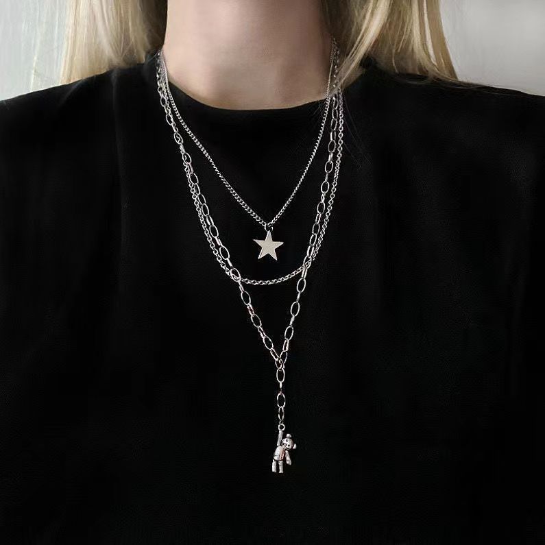 Colors: Ten Green Pin Necklace, Double-Layer Layered Necklace, Smiley Face and Heart Necklace, W-Letter Necklace, Black Gemstone Necklace, T-Letter Necklace