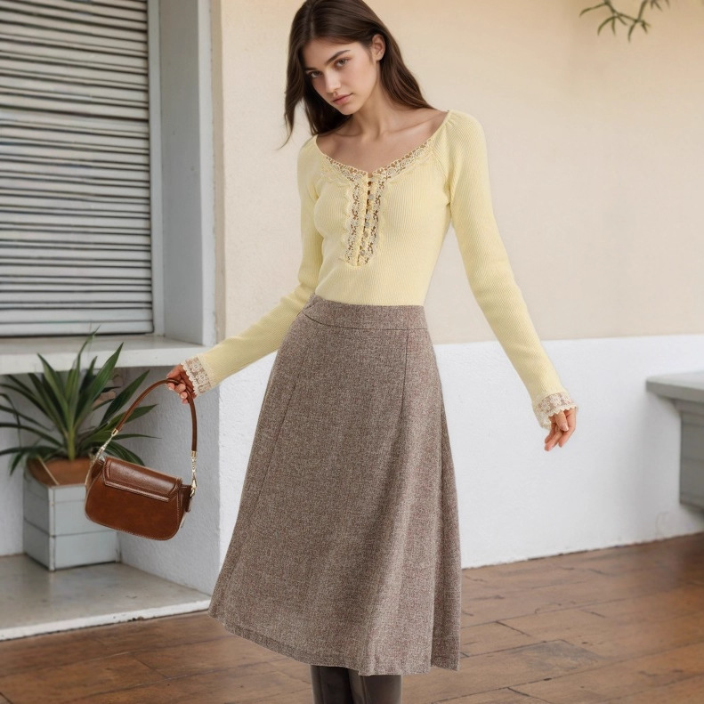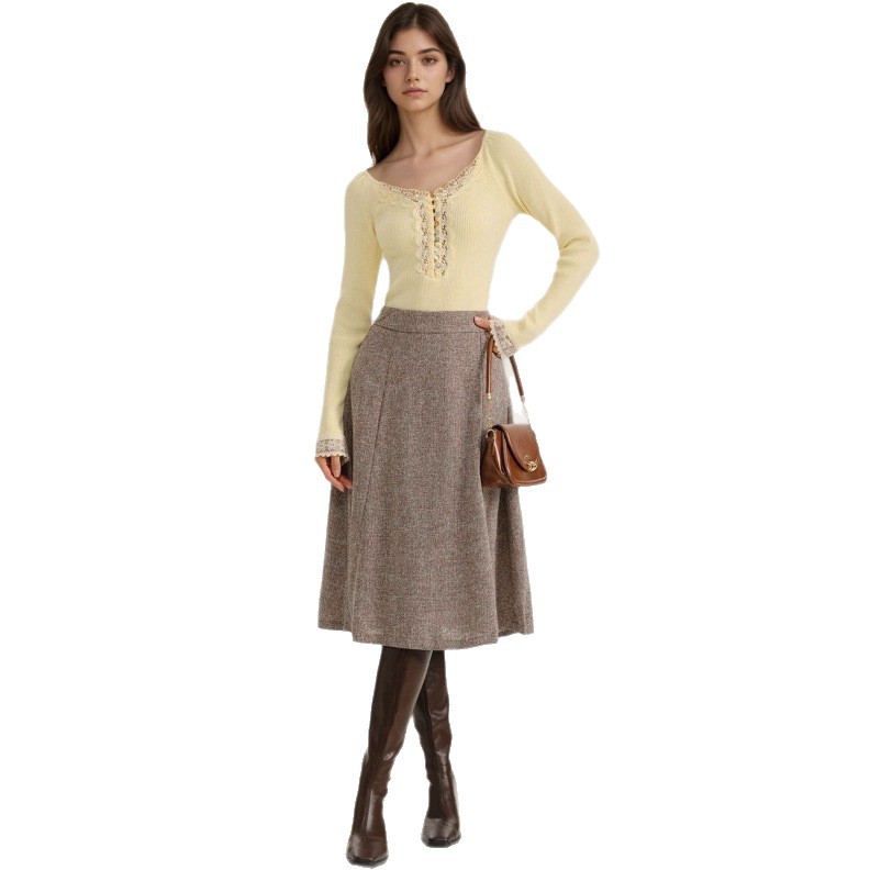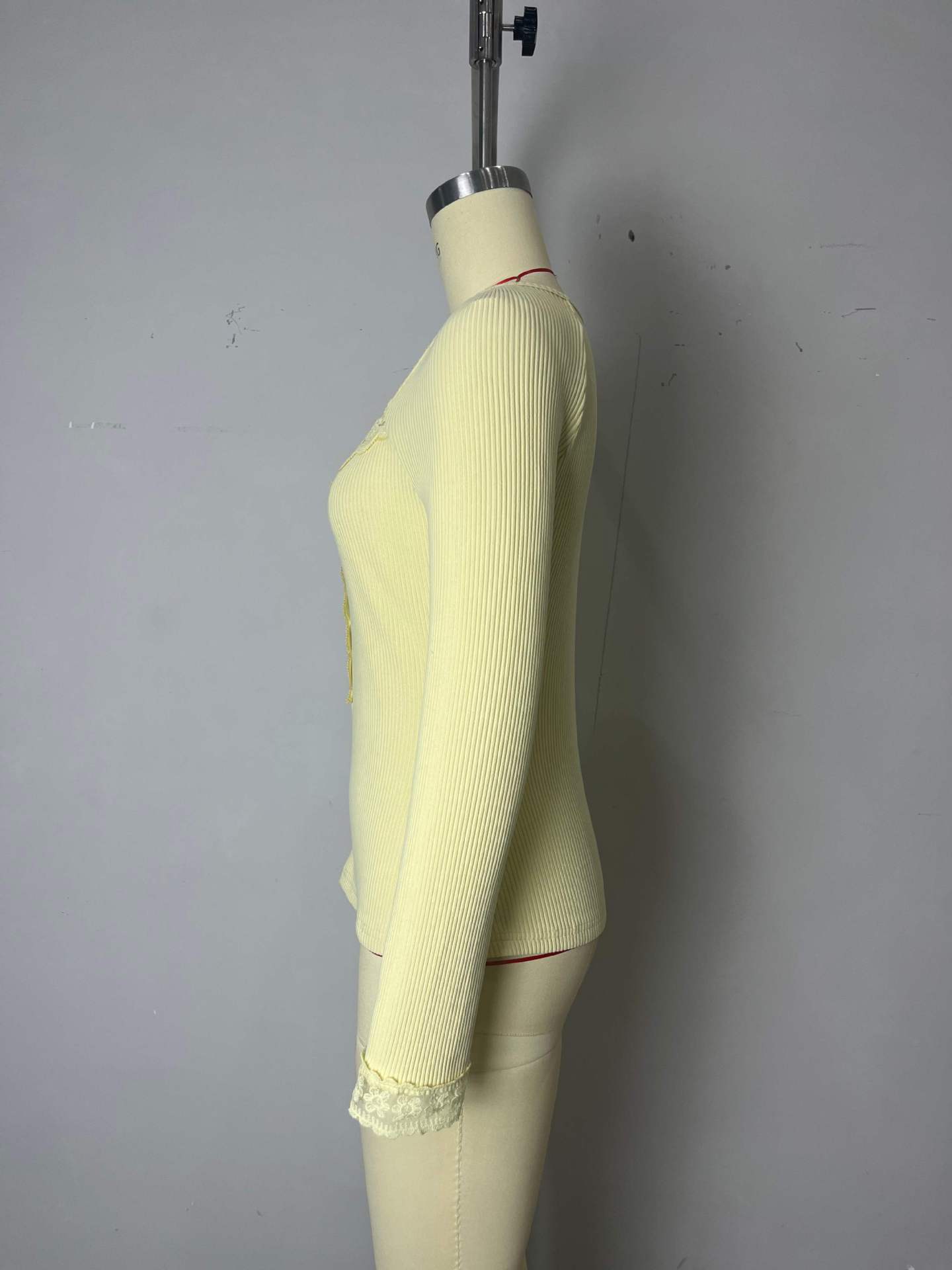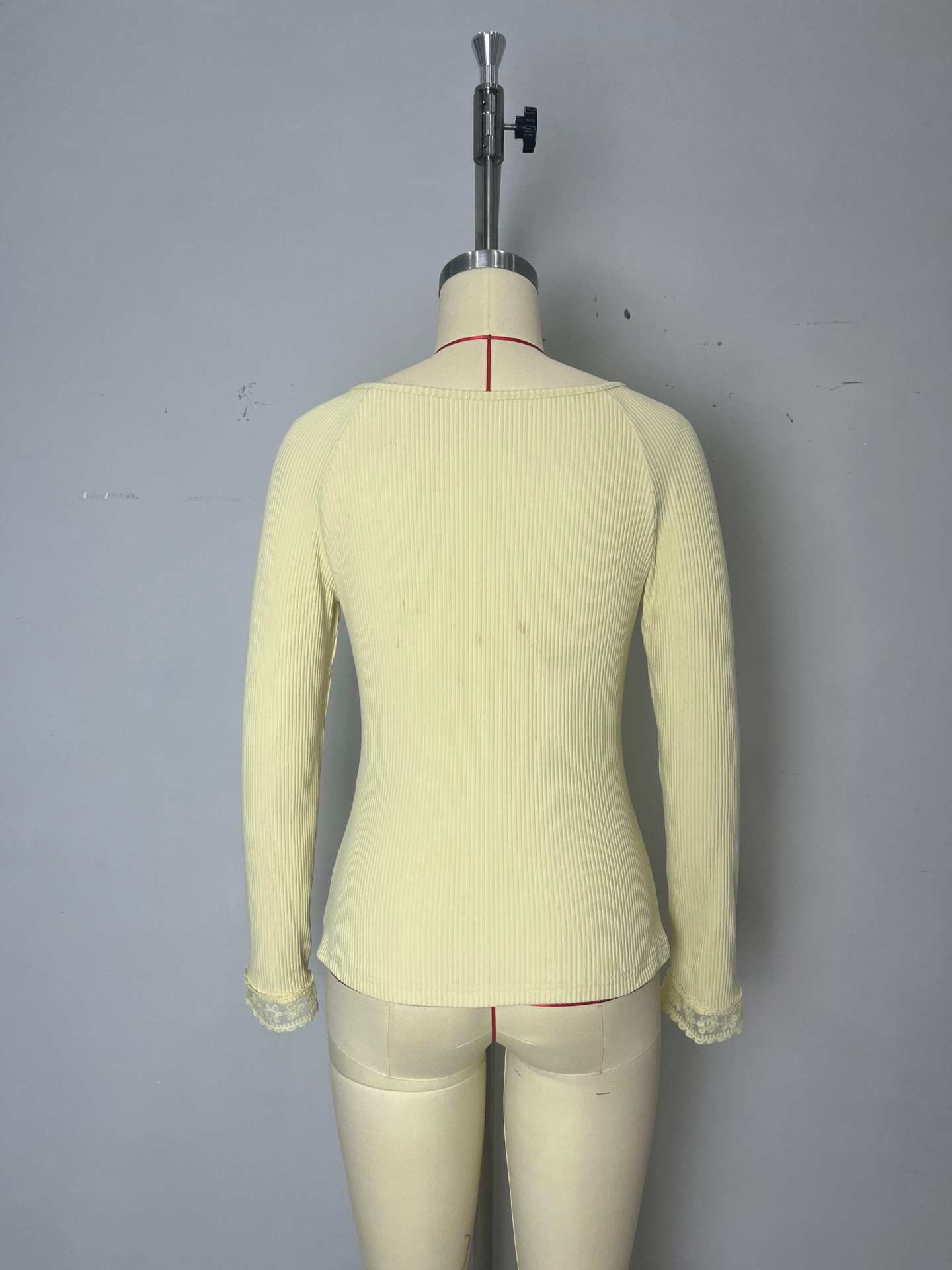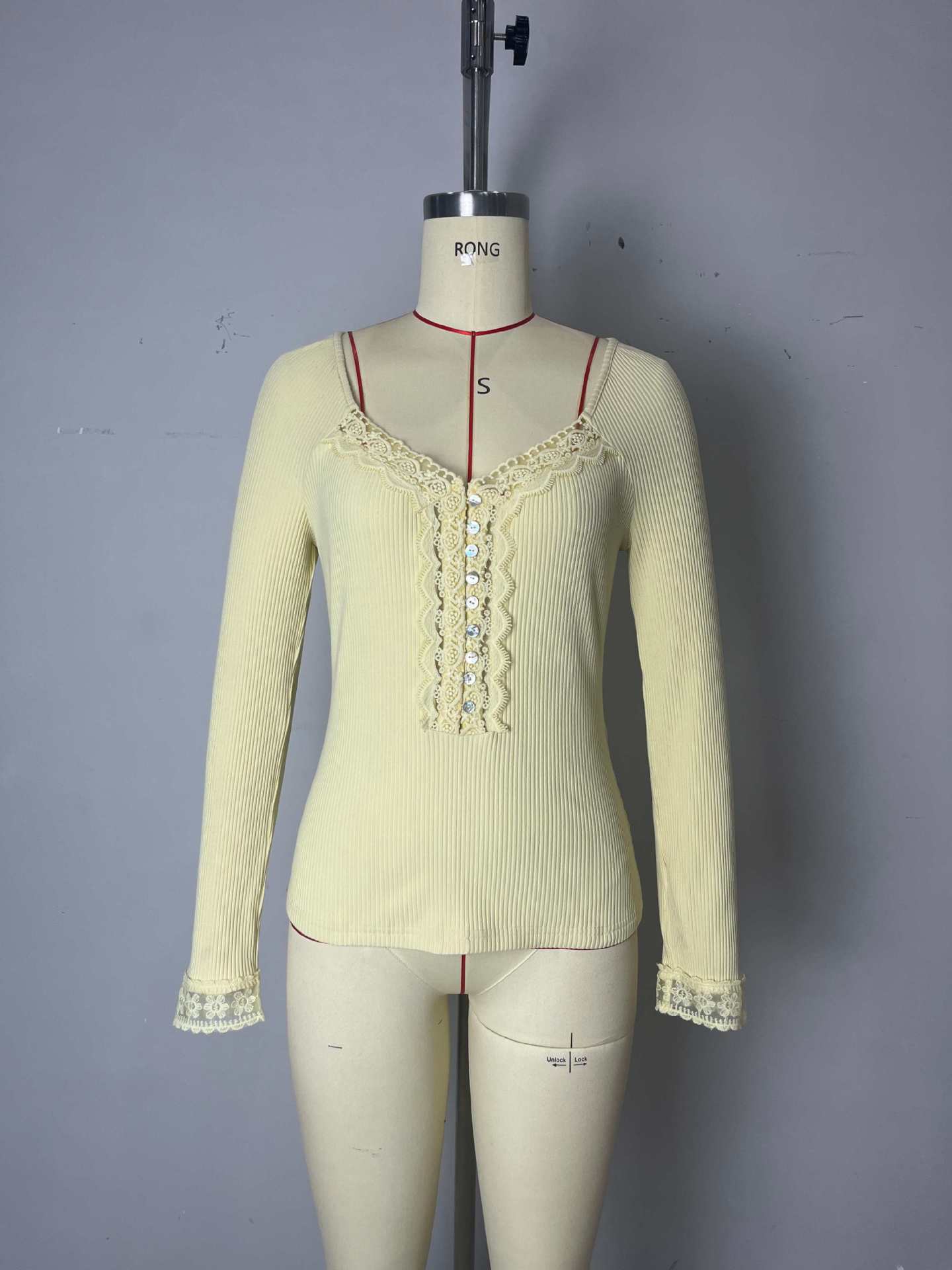Womens Top With A French Lace-trimmed Collar And Buttons