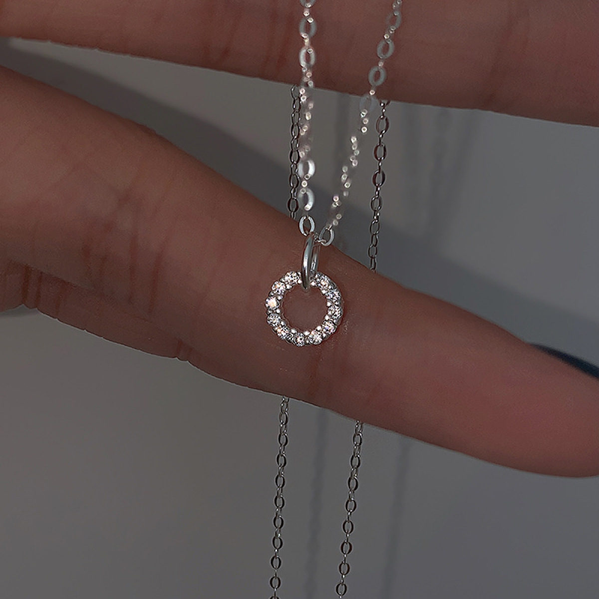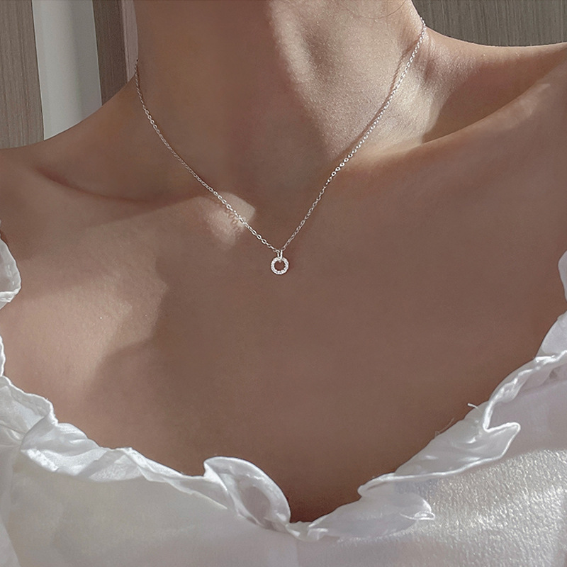 Color: XL188 Full Diamond Ring Pendant Necklace (White Gold)