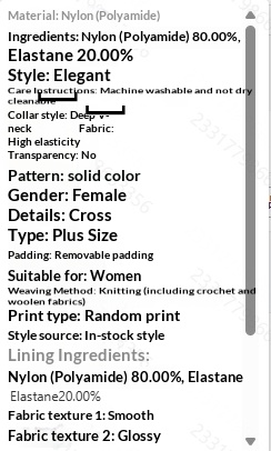 Lining Composition: 80.00% Polyamide (Nylon), 20.00% Elastane (Spandex)