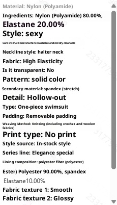 • Composition: 80.00% Polyamide (Nylon), 20.00% Elastane (Spandex)
