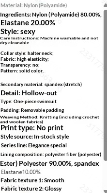 • Composition: 80.00% Polyamide (Nylon), 20.00% Elastane (Spandex)