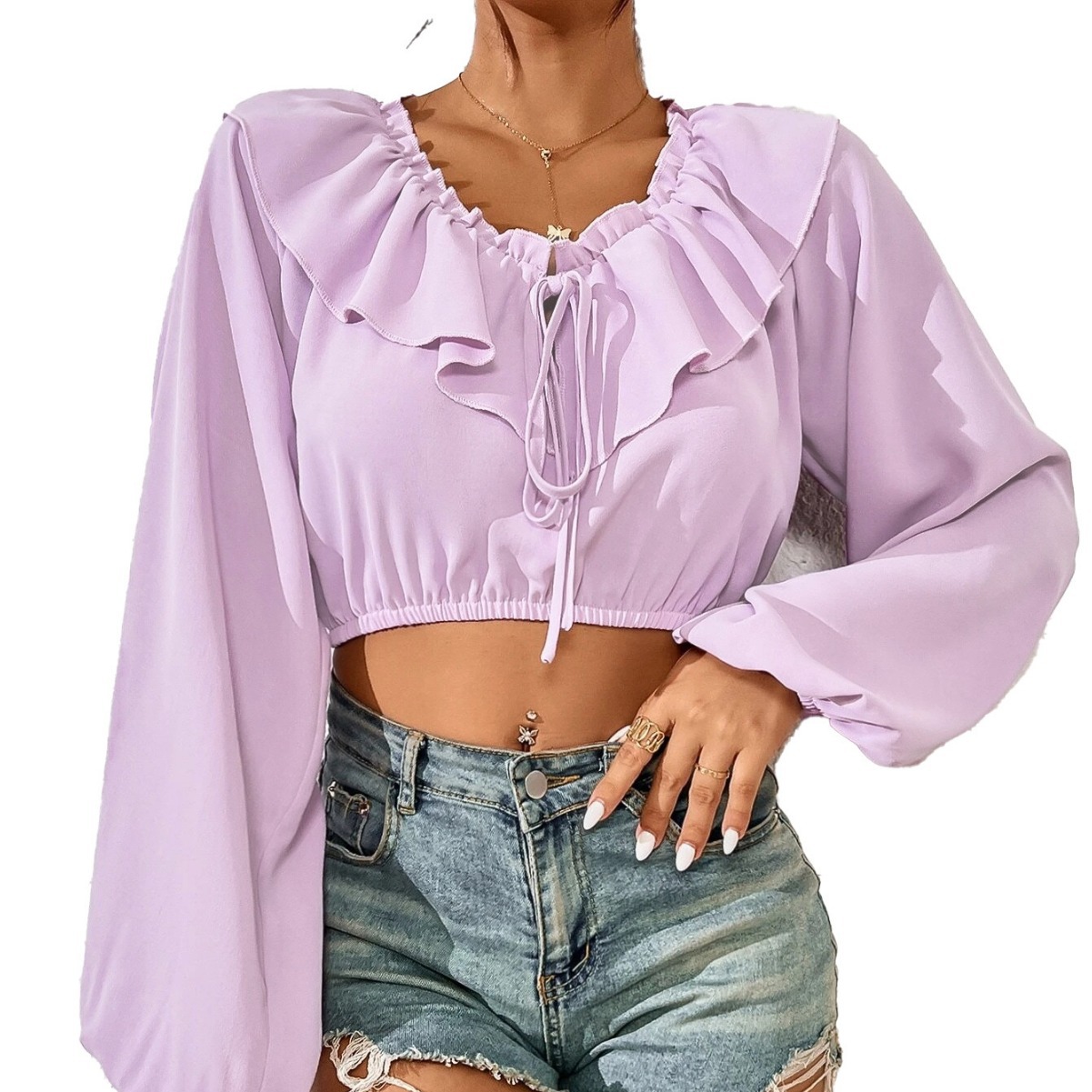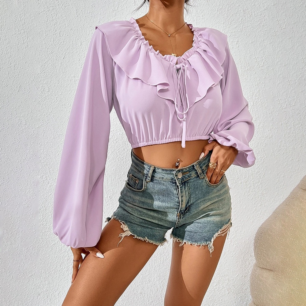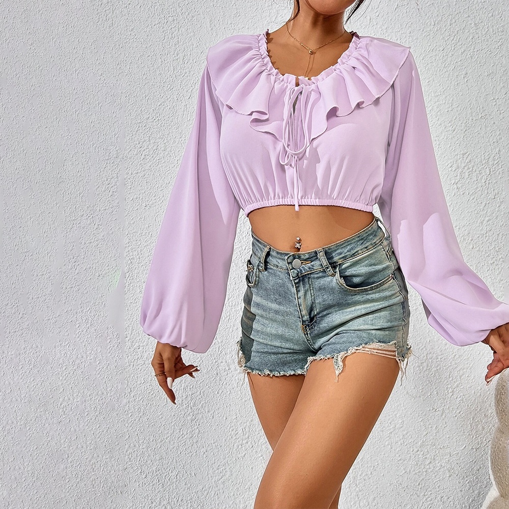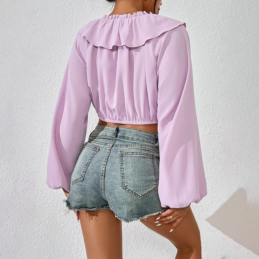 Women's Ultra-short Ruffled Collar Puff Sleeve Long-sleeved Top