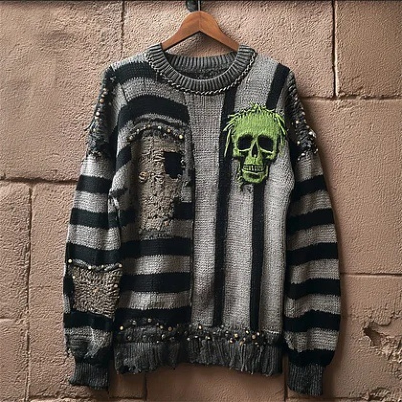 Womens Unique Loose-Fitting Knit Sweater With AutumnWinter Prints