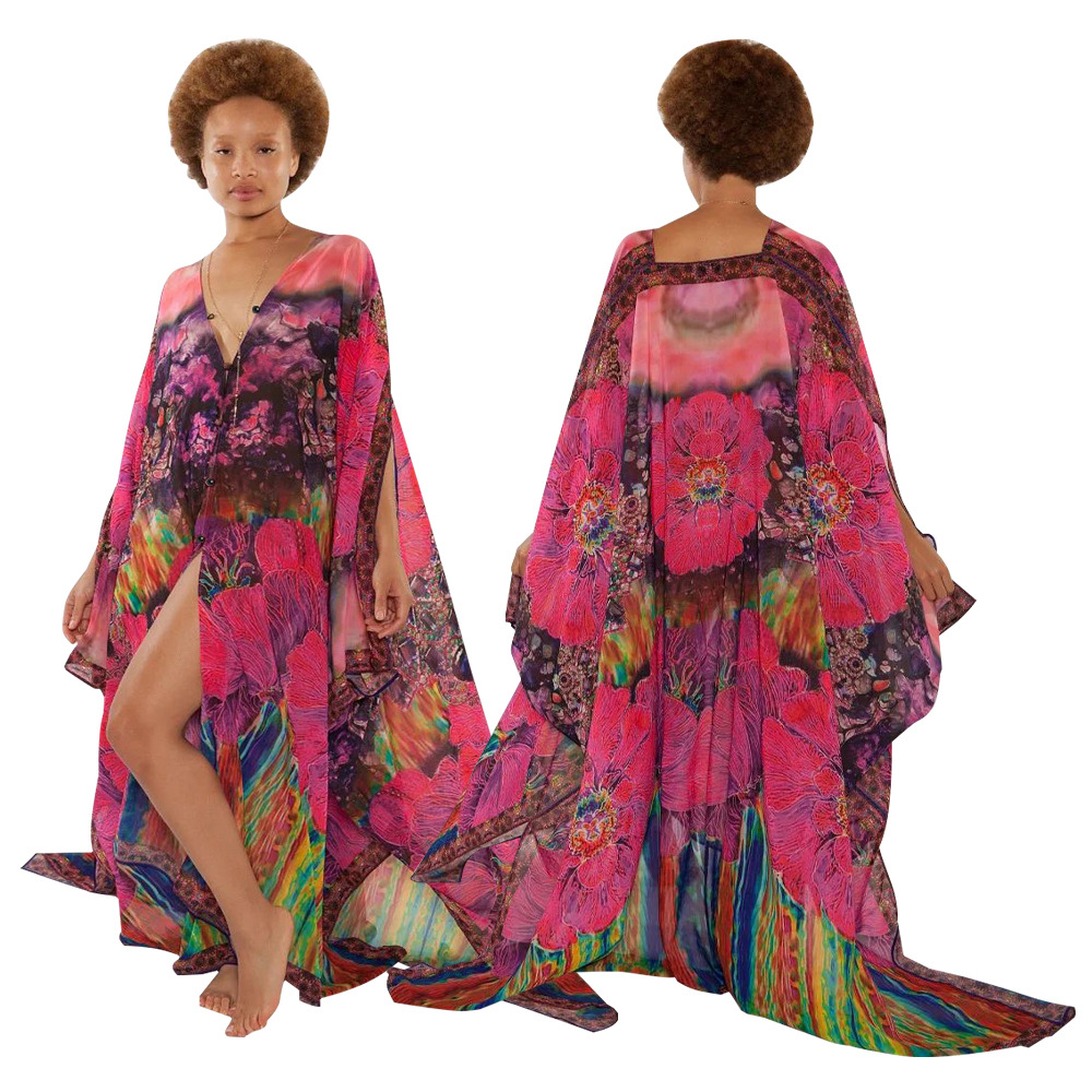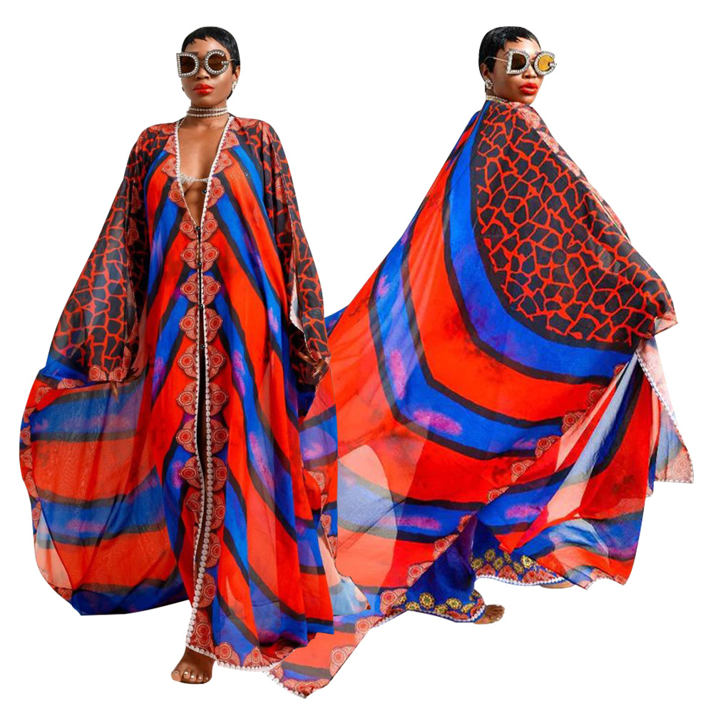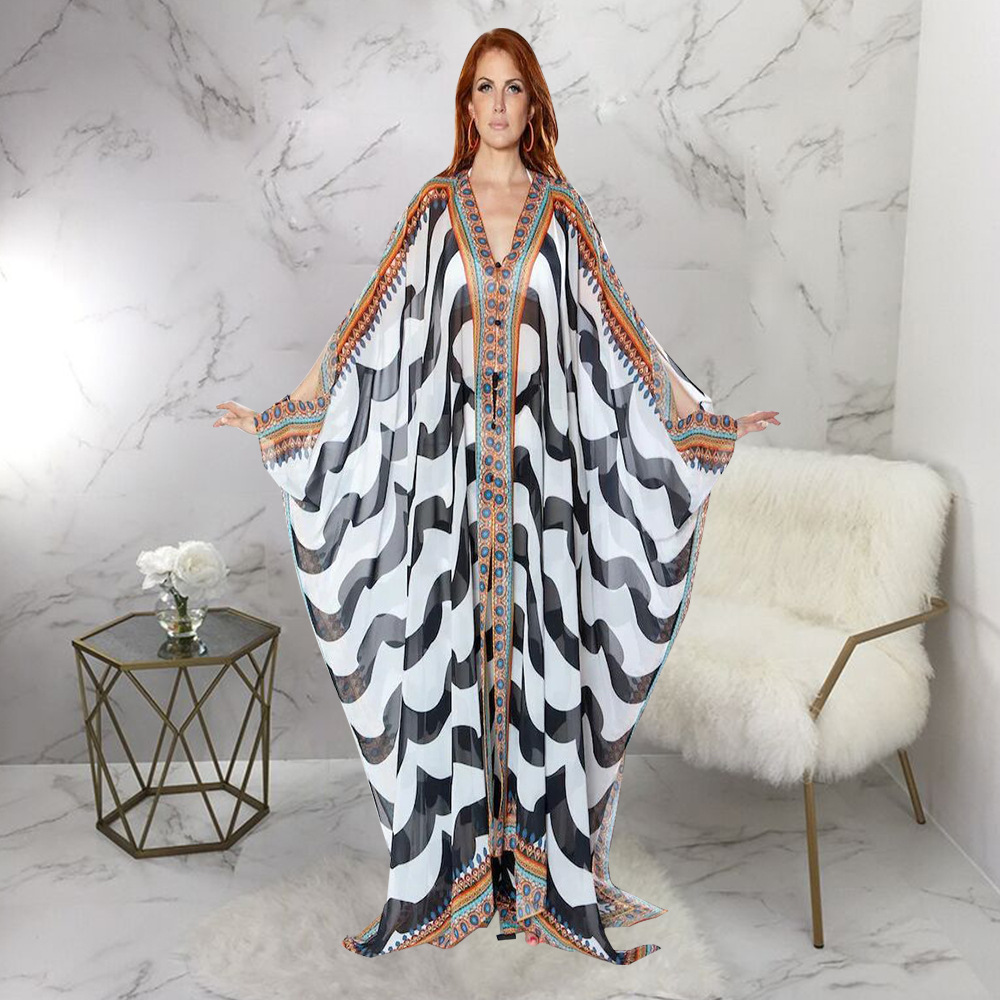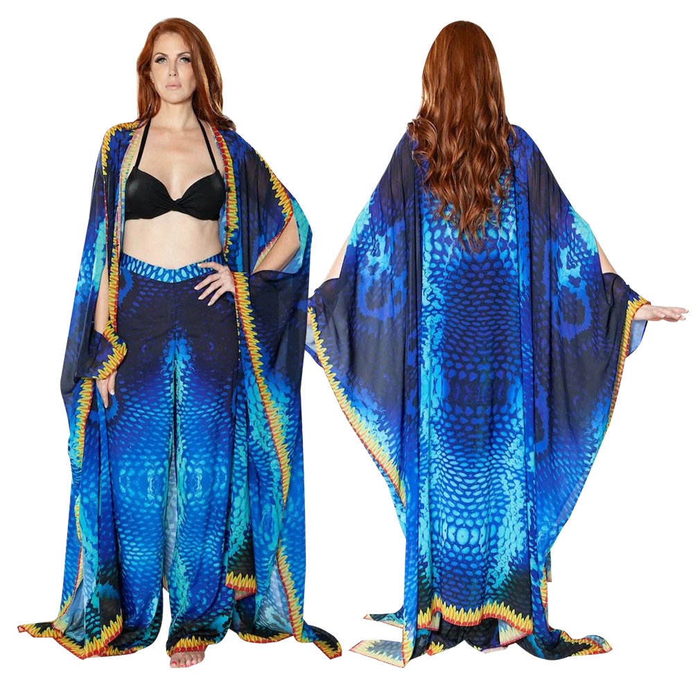 Women's V-neck Casual Printed Jacket With Perspective Chiffon Shirt