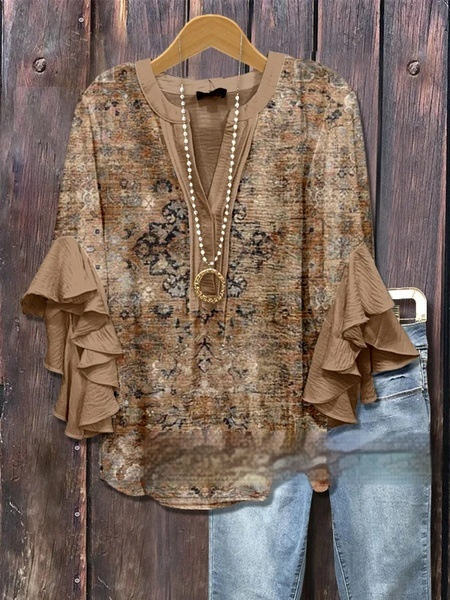 Women's V-neck Fashion Lotus Sleeve T-shirt