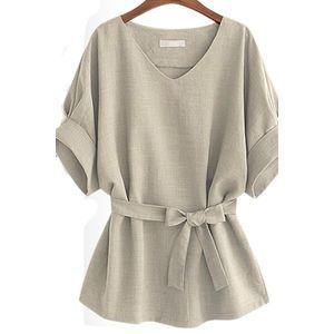 Women's V-neck Linen Short-sleeved Shirt
