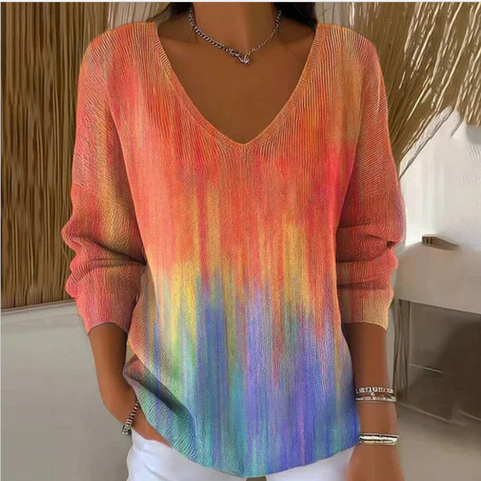 Women's V-neck Long Sleeve Pullover 3D Digital Printing