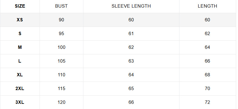 Sizes: XS, S, M, L, XL, XXL, XXXL