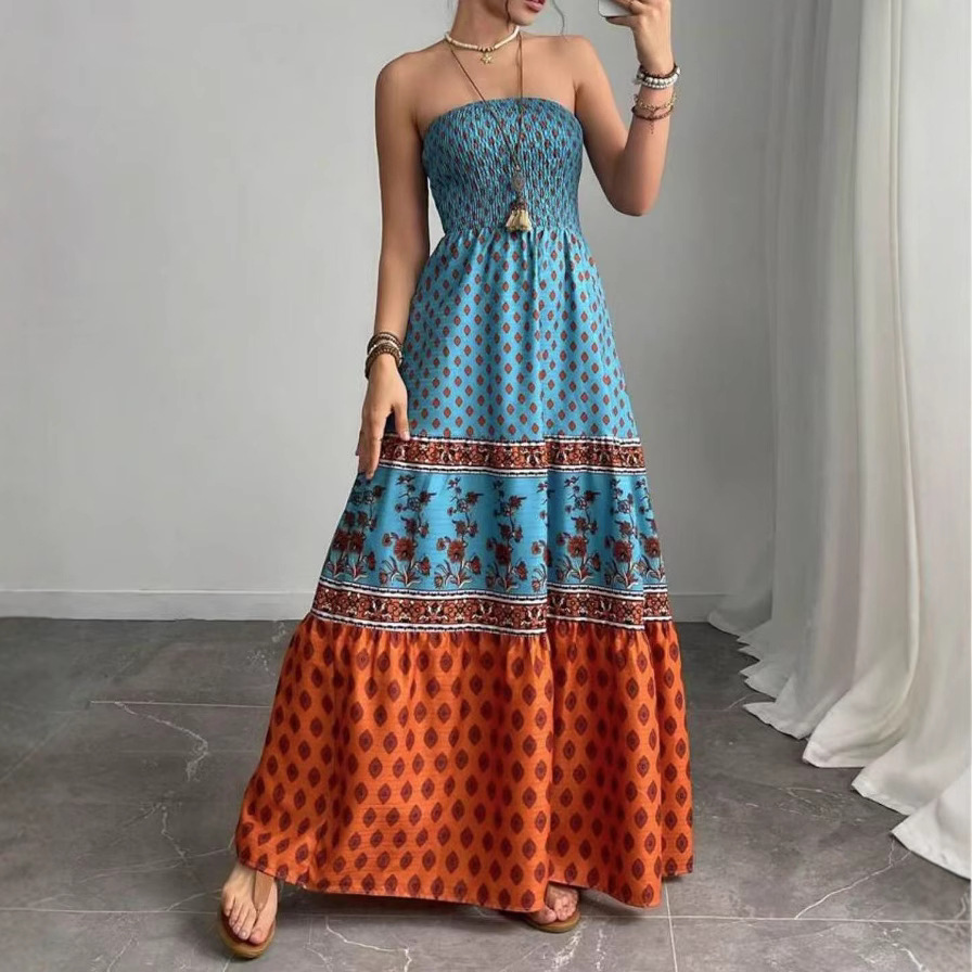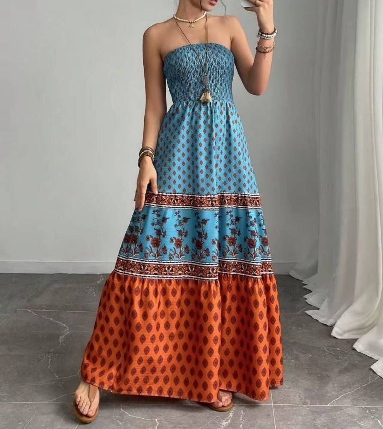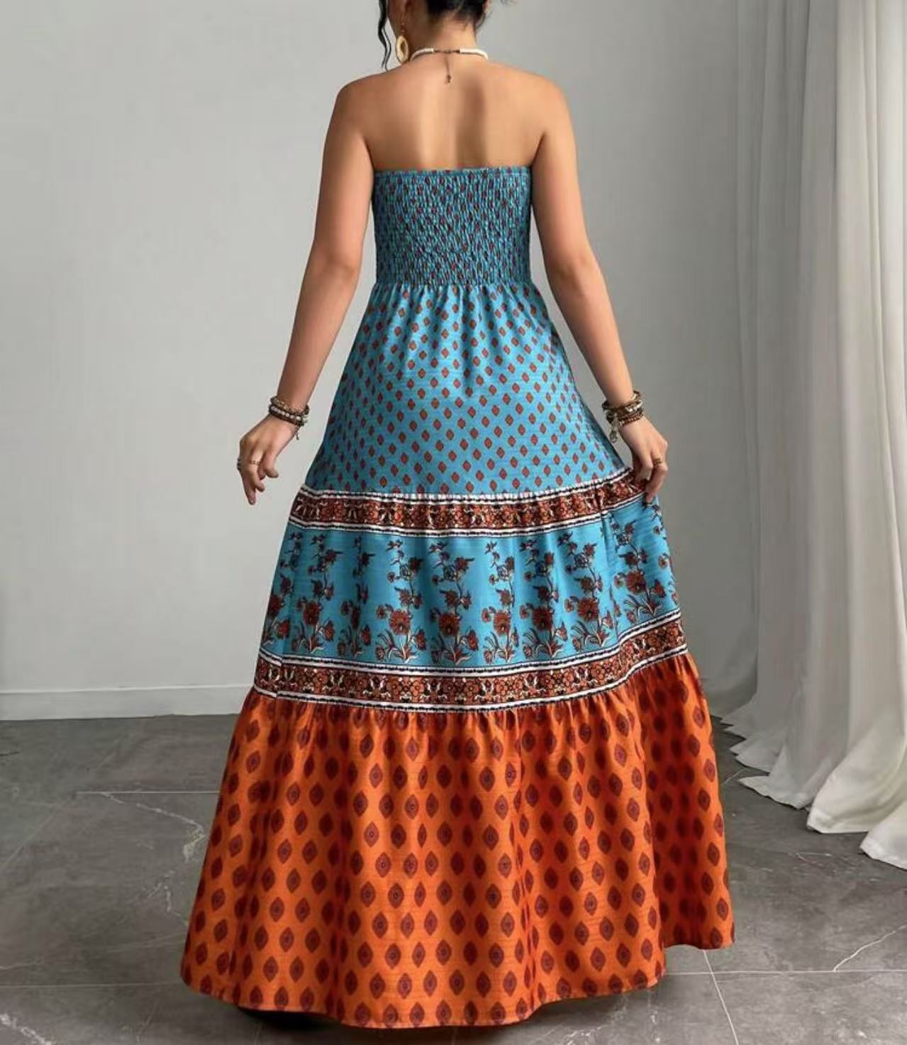 Colors: Navy blue, peacock blue, orange, off-white, light yellow