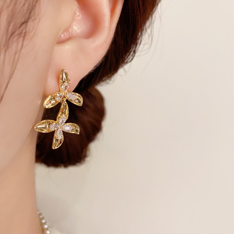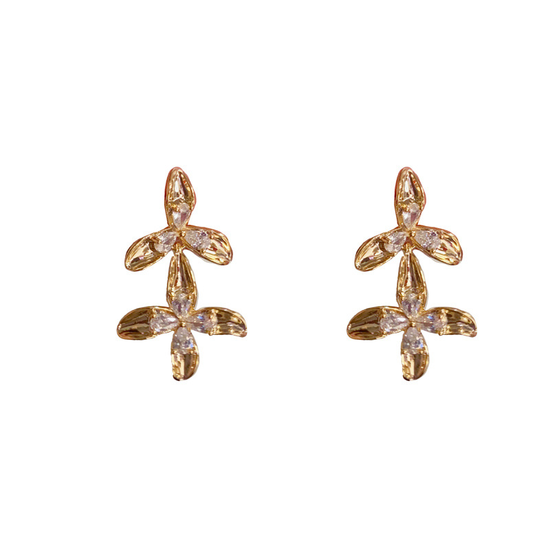 Color: metal diamond petal fringe eardrops (thick gold plating)