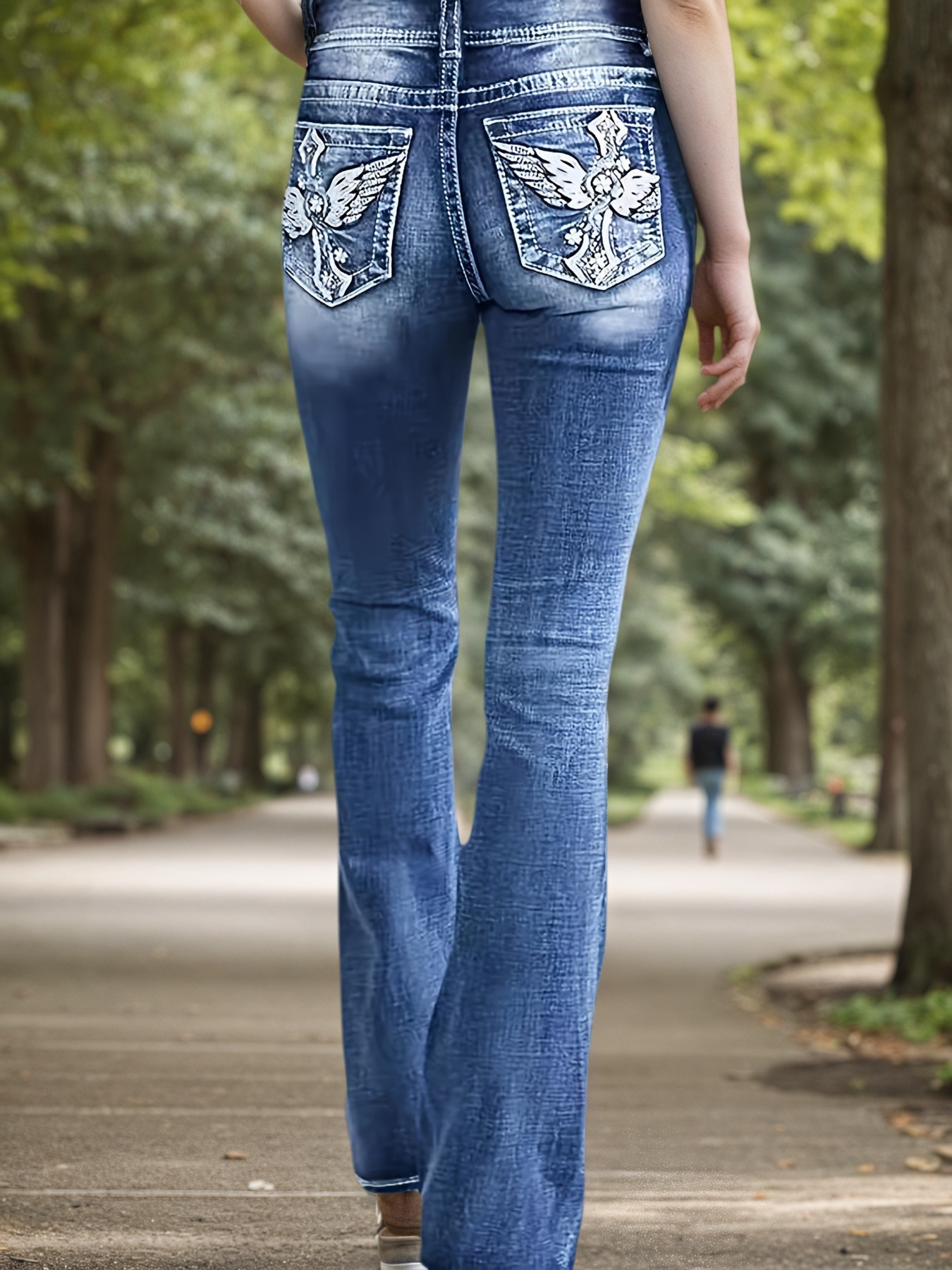 Women's Versatile And Fashionable Stretch Denim Bell Bottoms, Retro Street Style, Comfortable Embroidered Casual Jeans, Suitable For Daily Wear