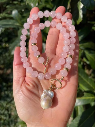 Women's Versatile Casual Natural Design Pink Crystal Finished Bracelet Necklace