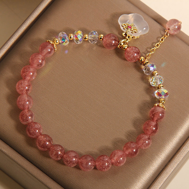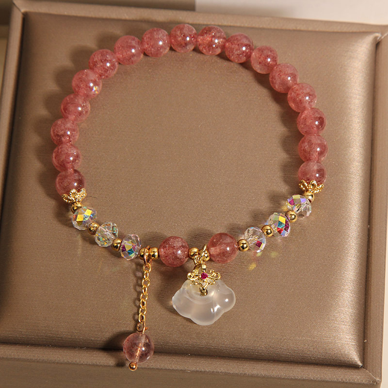 Product information:Color: Strawberry quartz white agate auspicious clouds Applicable population: Female Material: Crystal Weight: 40