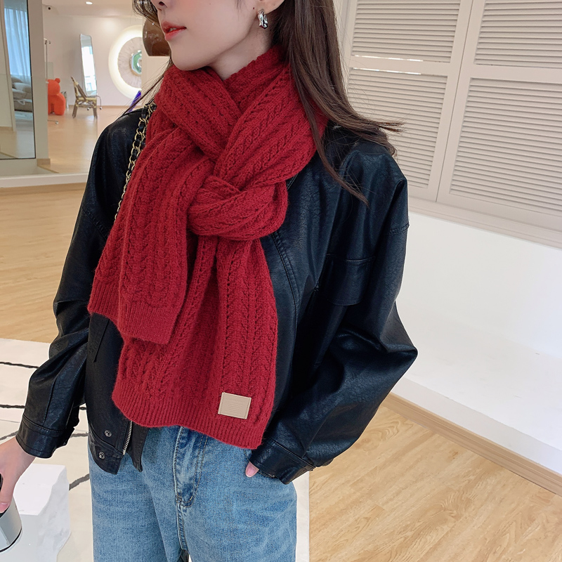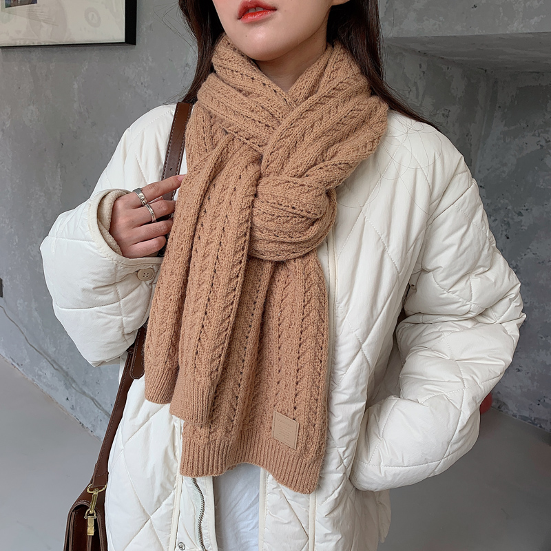 Women's Versatile Warm Solid Color Hollow Knitted Cashmere Scarf