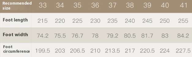 Size: 33, 34, 35, 36, 37, 38, 39, 40, 41, 42, 43
