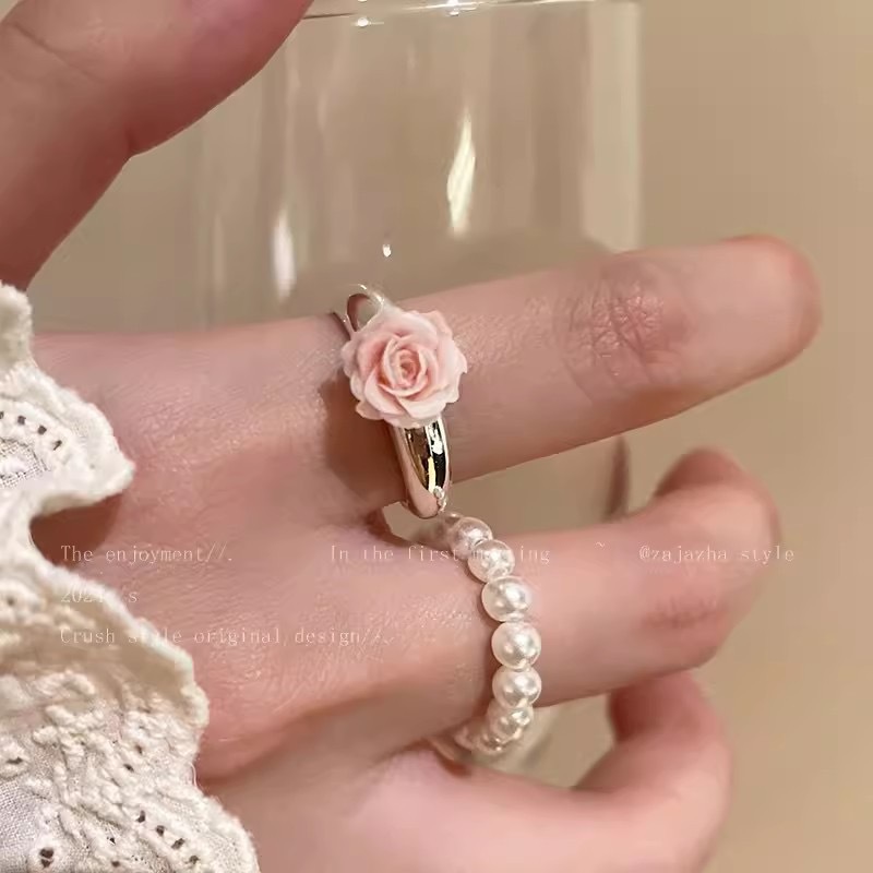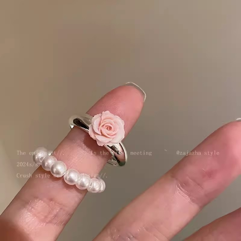 Product information:Color: Pearl ring, rose ring Trendy element: Flower Style: Korean-style/Korean