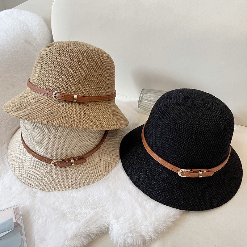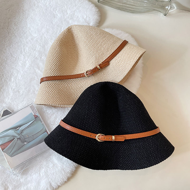 Women's Vintage Style Linen Knit Belt Basket Hat