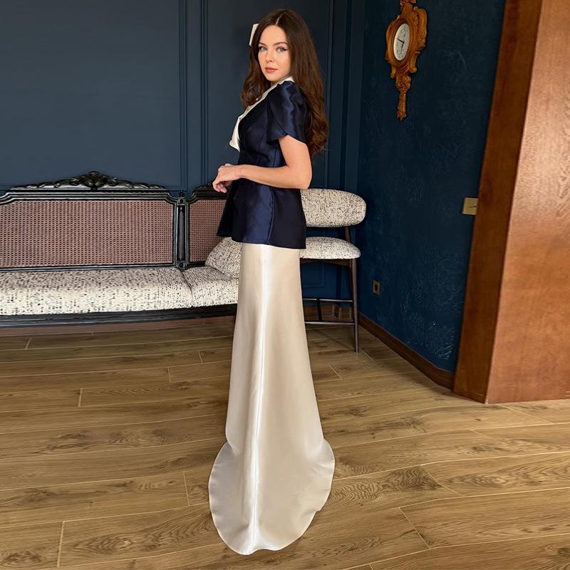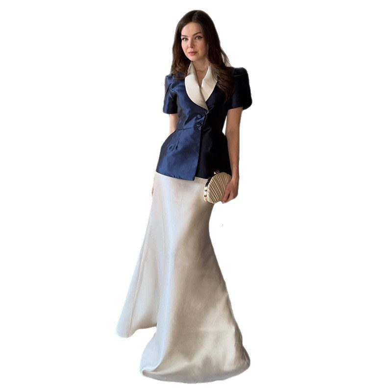 Womens Waist-cinching Short-sleeve Long Dress Set