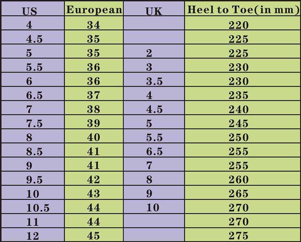 Sizes: 35, 36, 37, 38, 39, 40, 41, 42, 43, 44