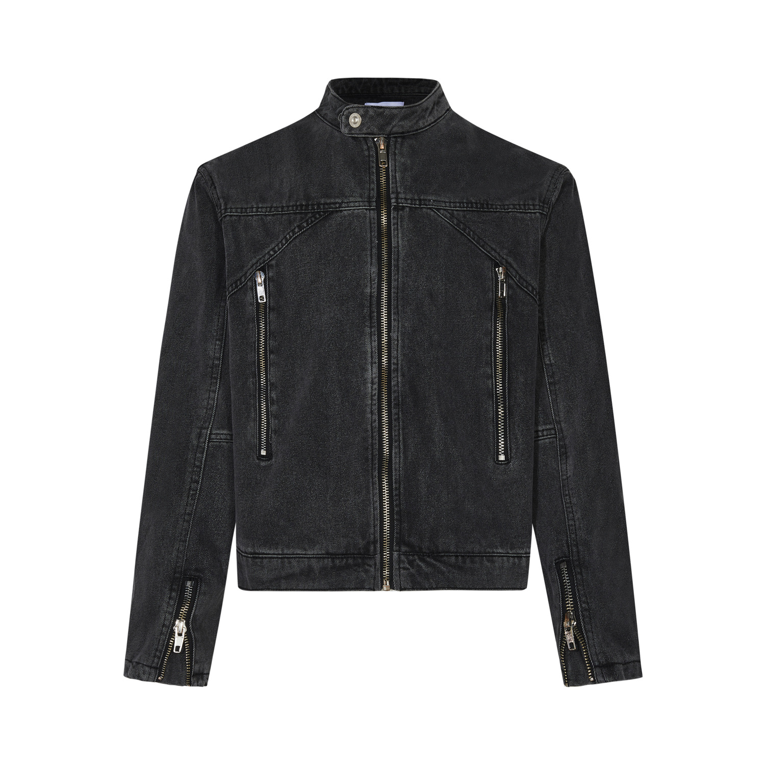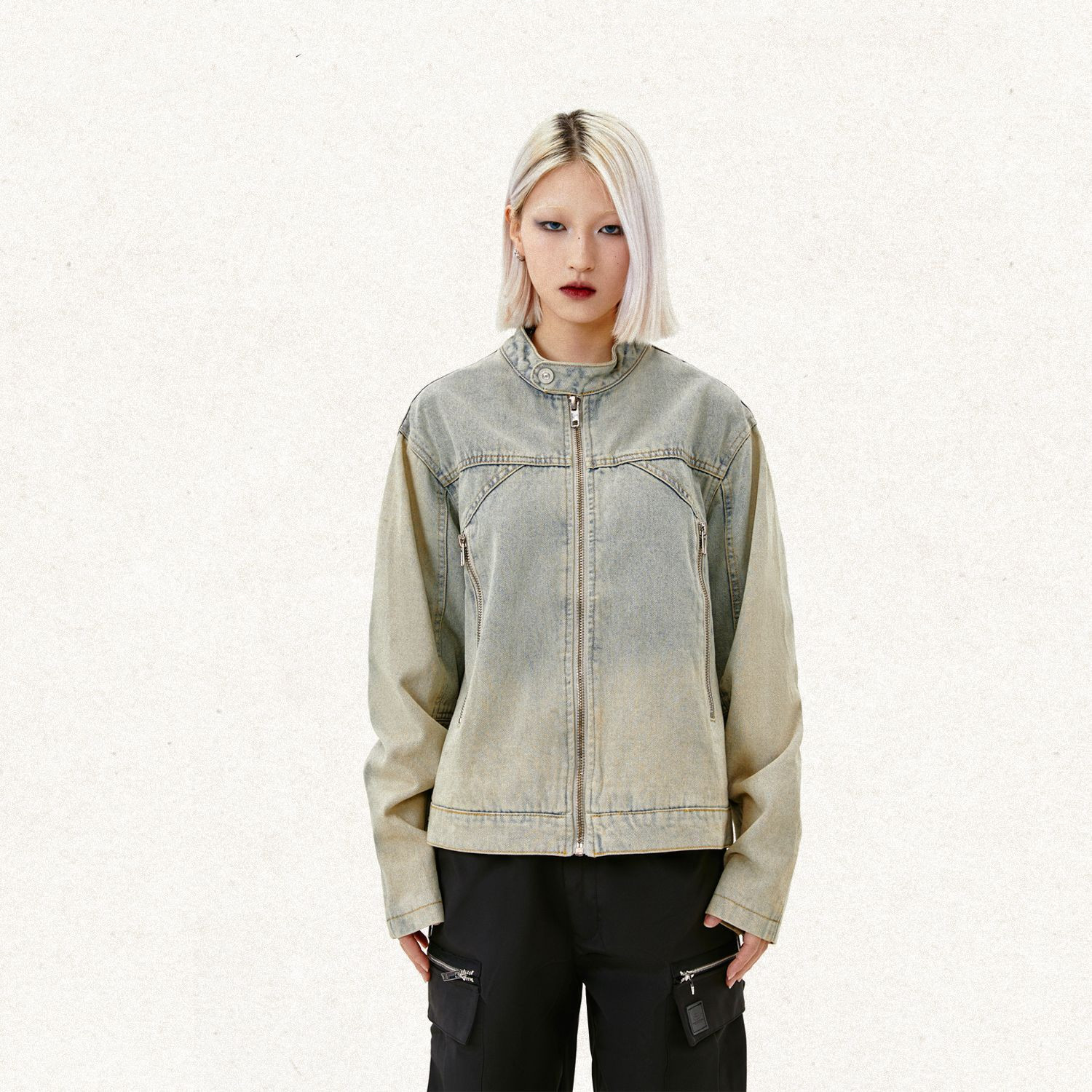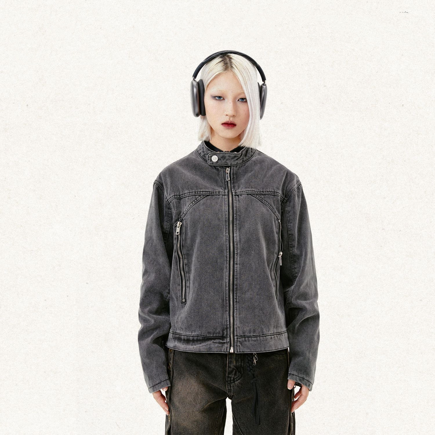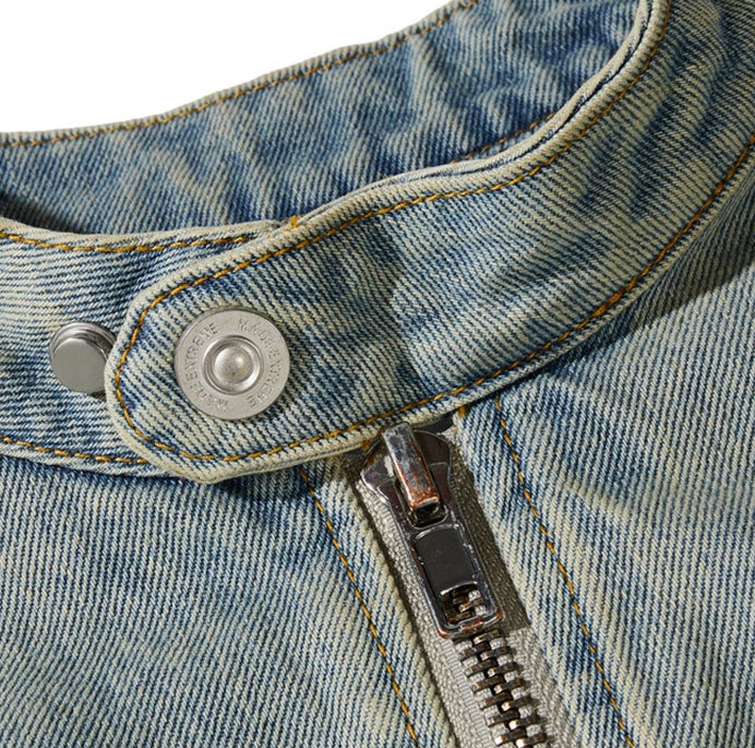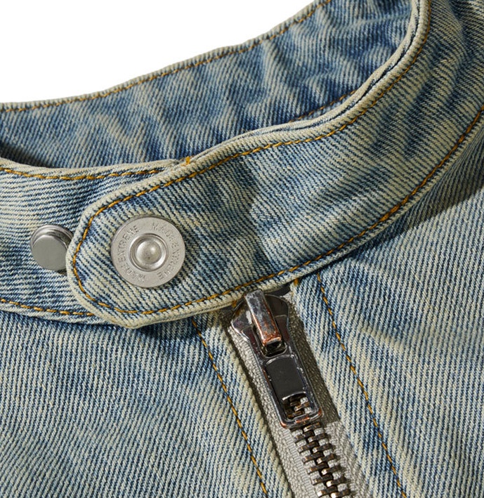 Women's Washed Distressed Half Turtleneck Zipper Denim Coat