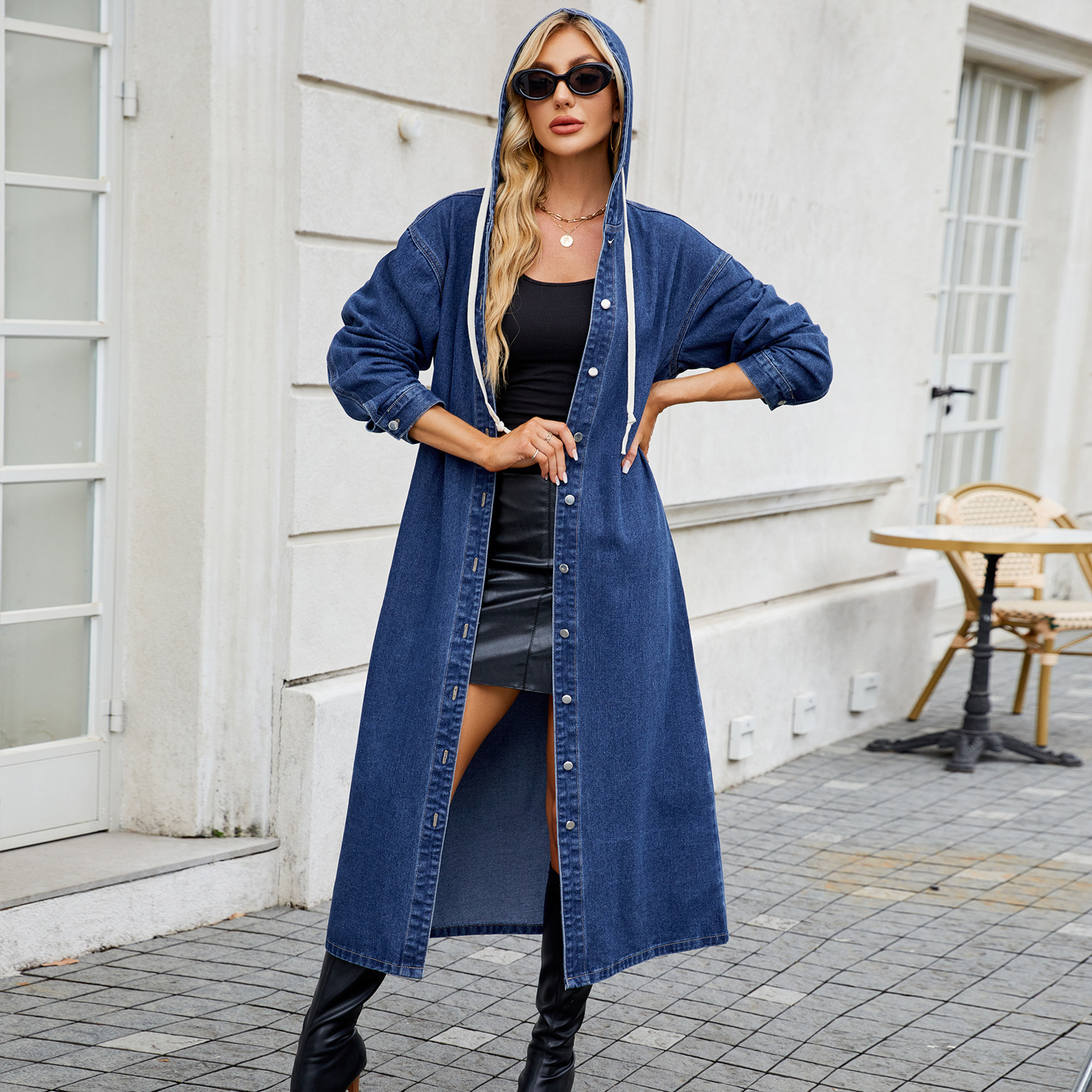 Women's Washed Hooded Long Denim Coat
