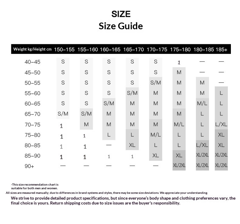Note: 1. Asian sizes are 1 to 2 sizes smaller than European and American people. Choose the larger size if your size between two sizes. Please allow 2-3cm differences due to manual measurement. 2. Please check the size chart carefully before you buy the item, if you don't know how to choose size, please contact our customer service. 3.As you know, the different computers display colors differently, the color of the actual item may vary slightly from the following images.