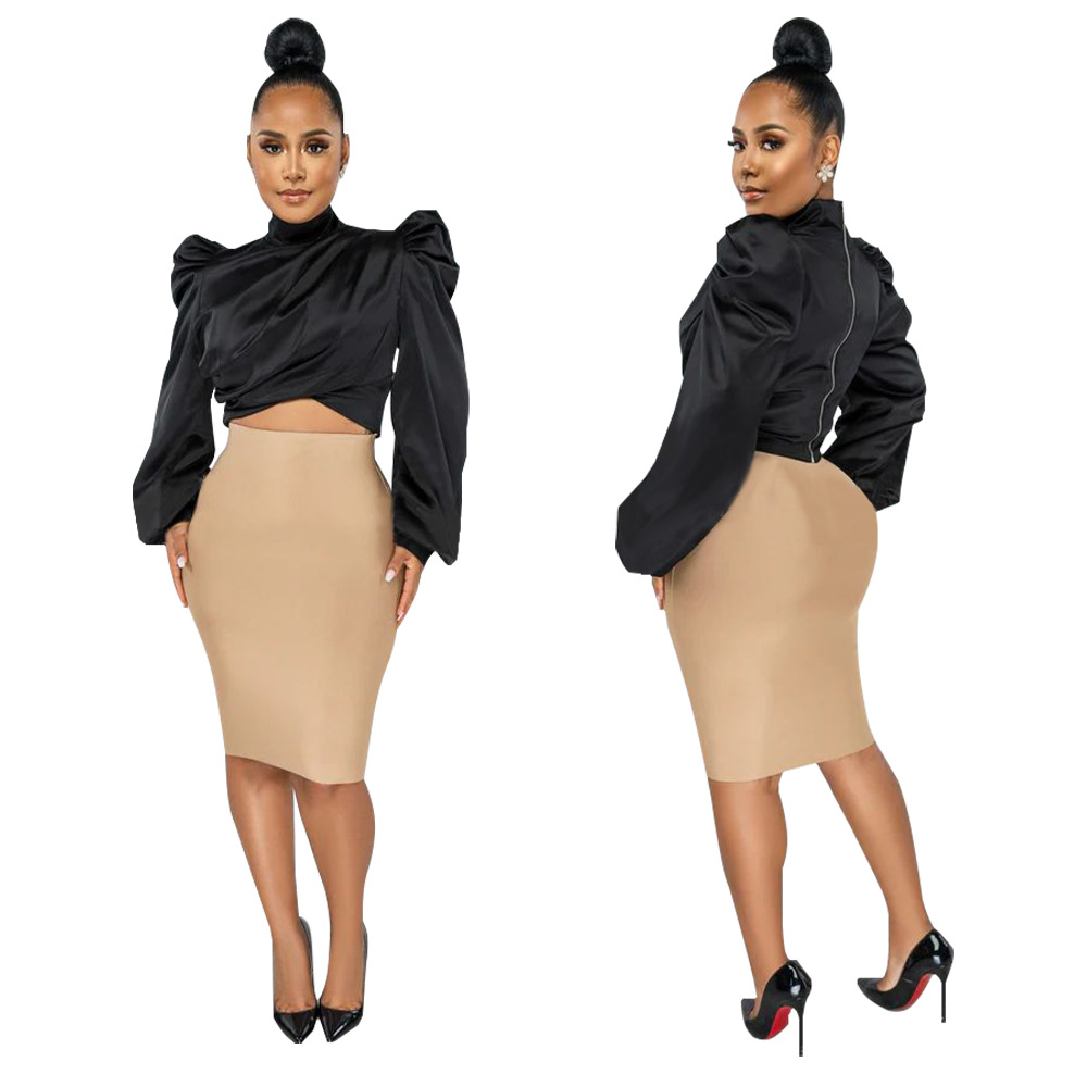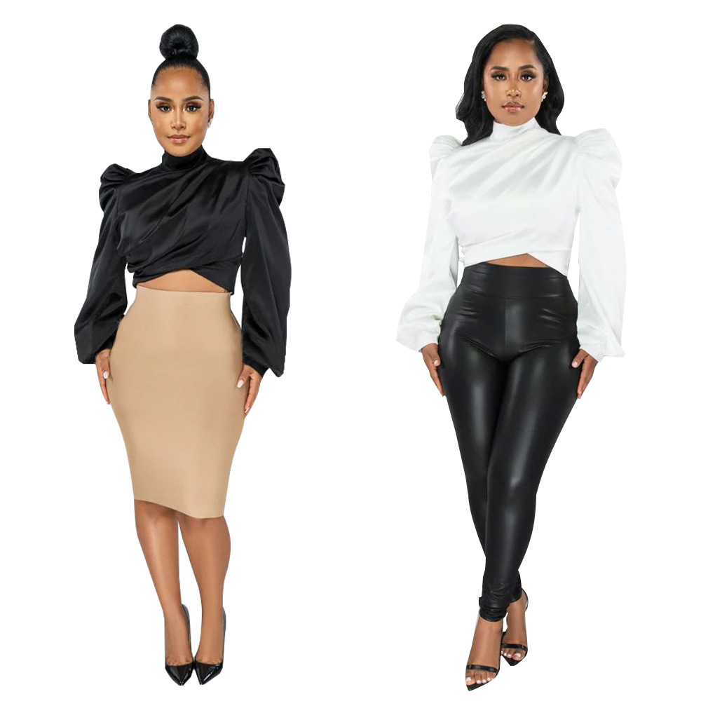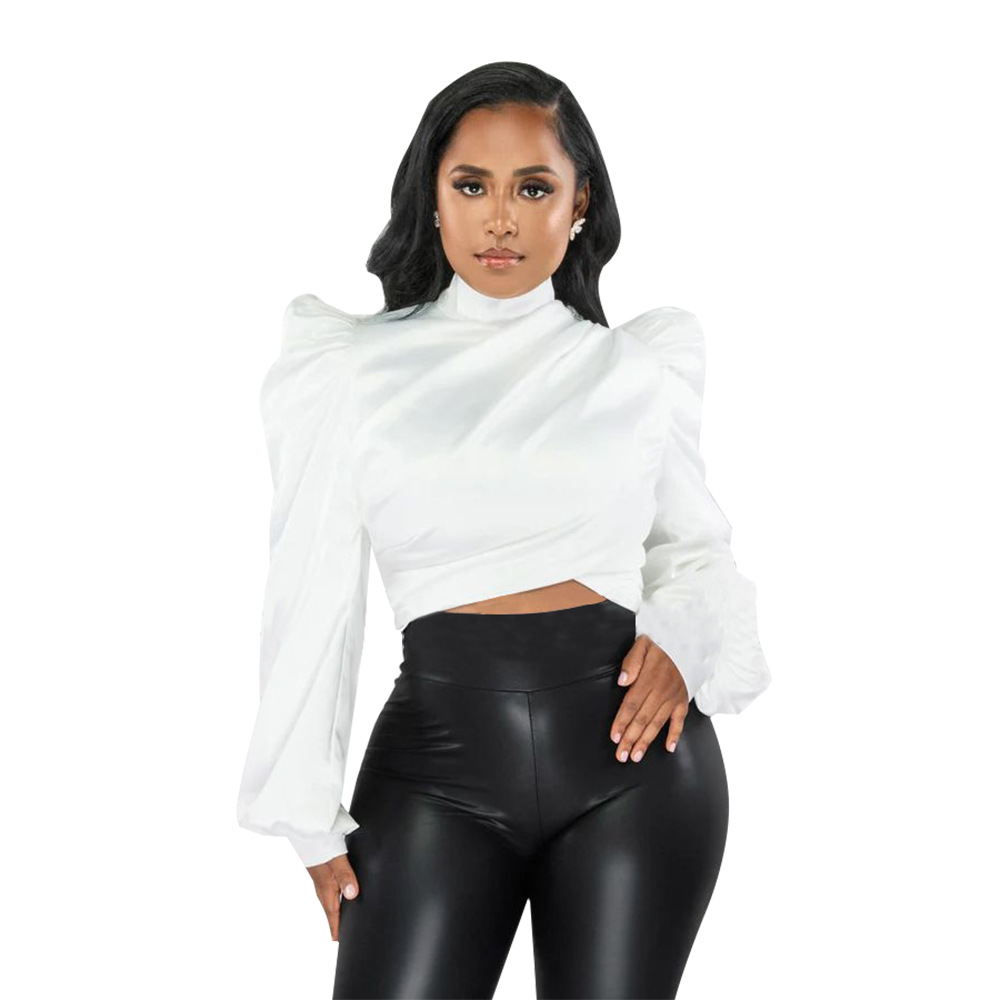 Women's Wear Puff Sleeve High Neck Short Artificial Silk Top