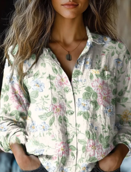 Women's White Floral Print Casual Long Sleeve Comfortable Cotton Shirt