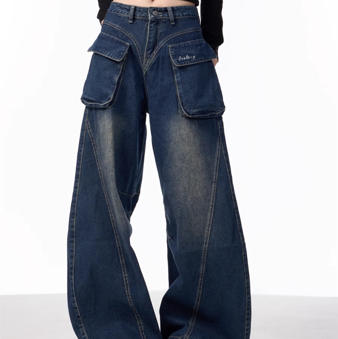 Women's Wide-leg Jeans With Pockets High Waist Loose Trousers