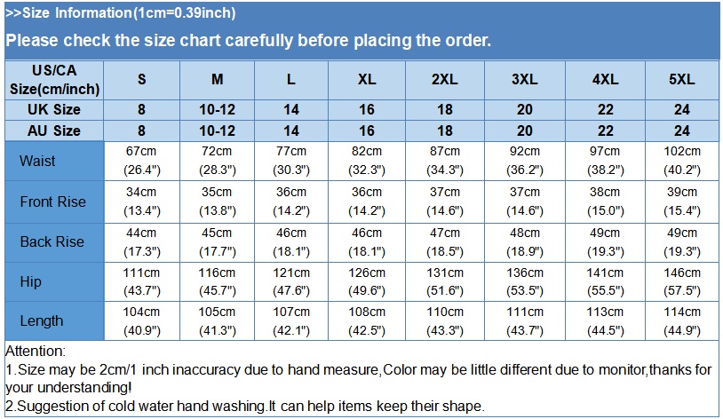 2. Please Check The Size Chart Carefully Before You Buy The Item, If You Don't Know How To Choose Size, Please Contact Our Customer Service.