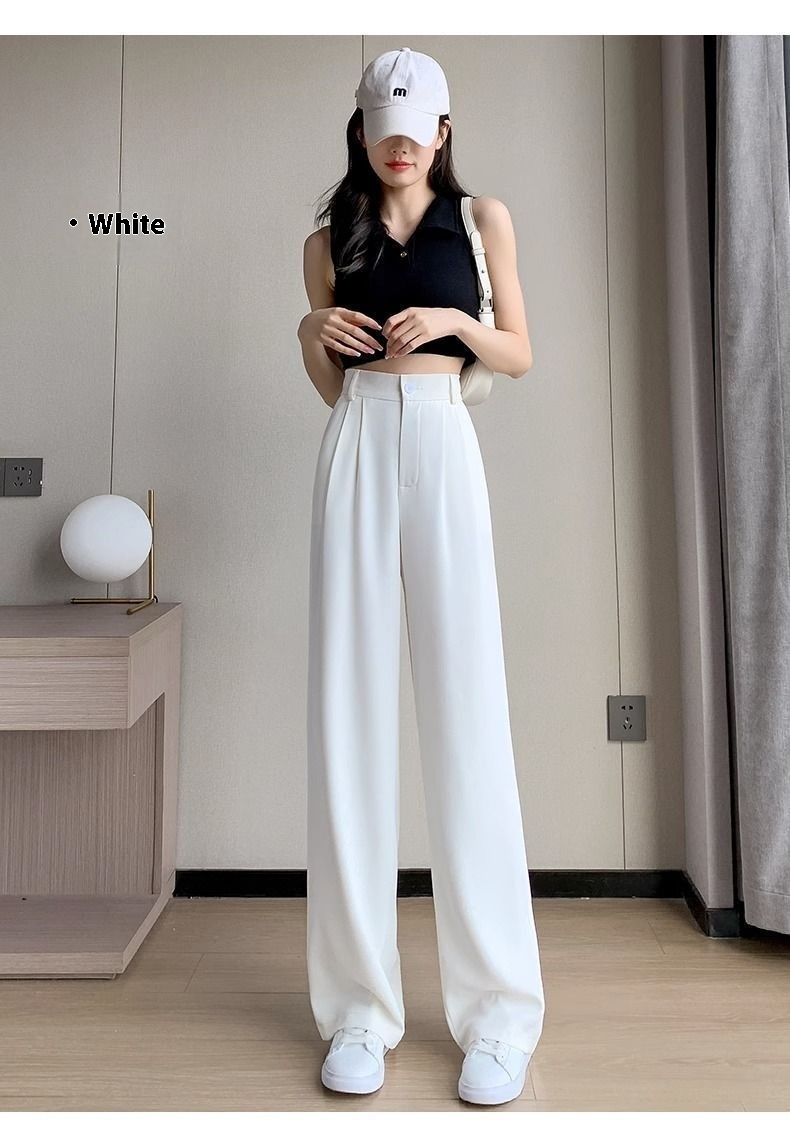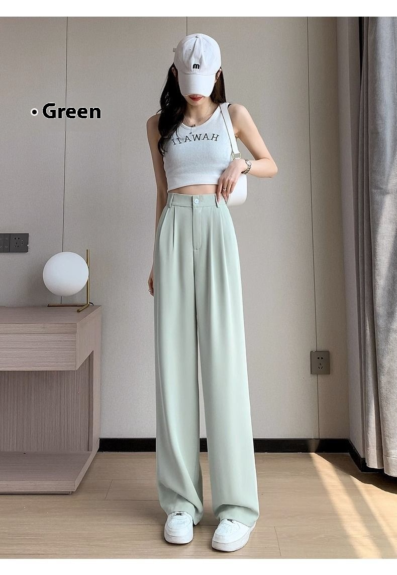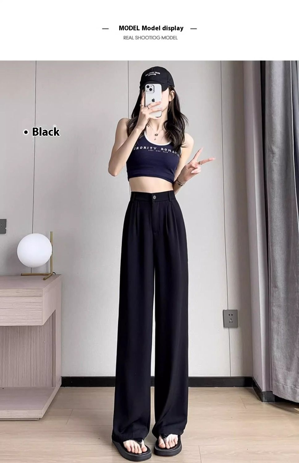 Women's Wide-leg Pants Summer Thin High Waist Slimming Draping Figure Small Straight Single Buckle Casual