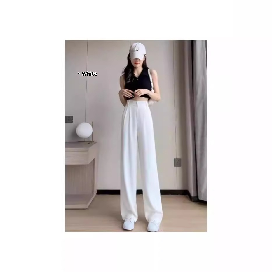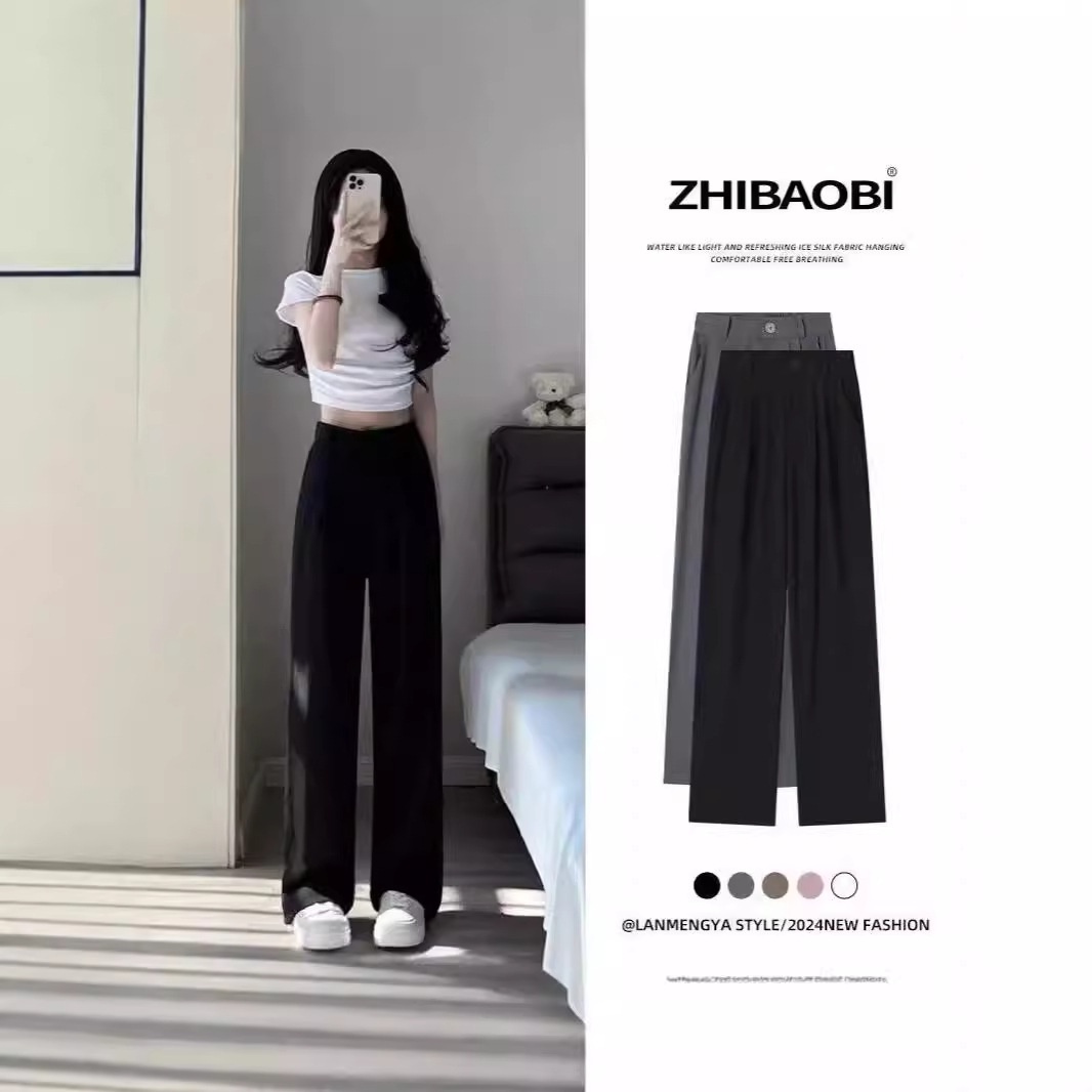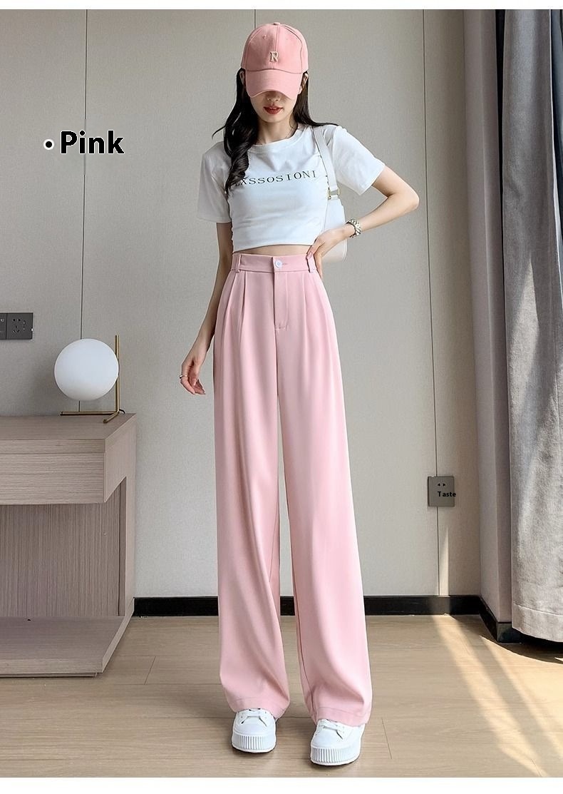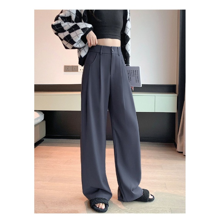 Women's Wide-leg Pants Summer Thin High Waist Slimming Draping Figure Small Straight Single Buckle Casual
