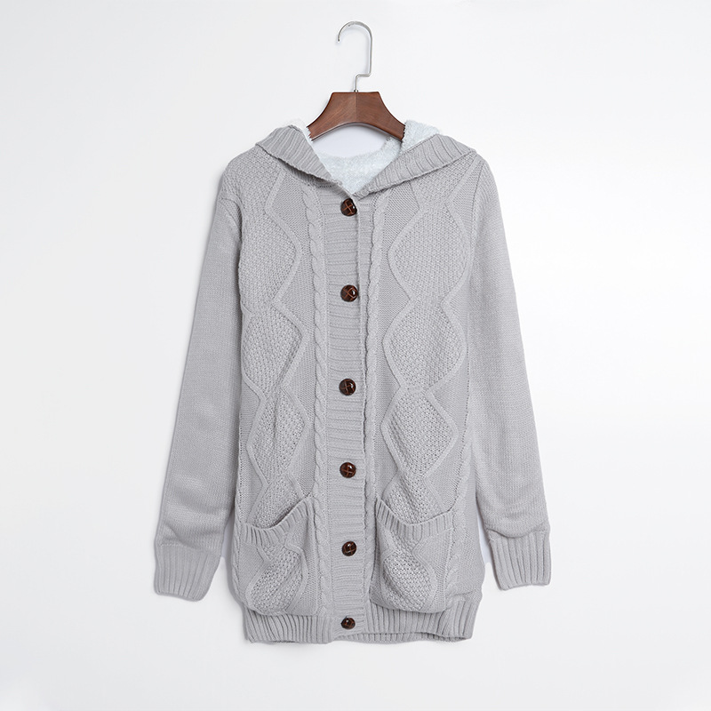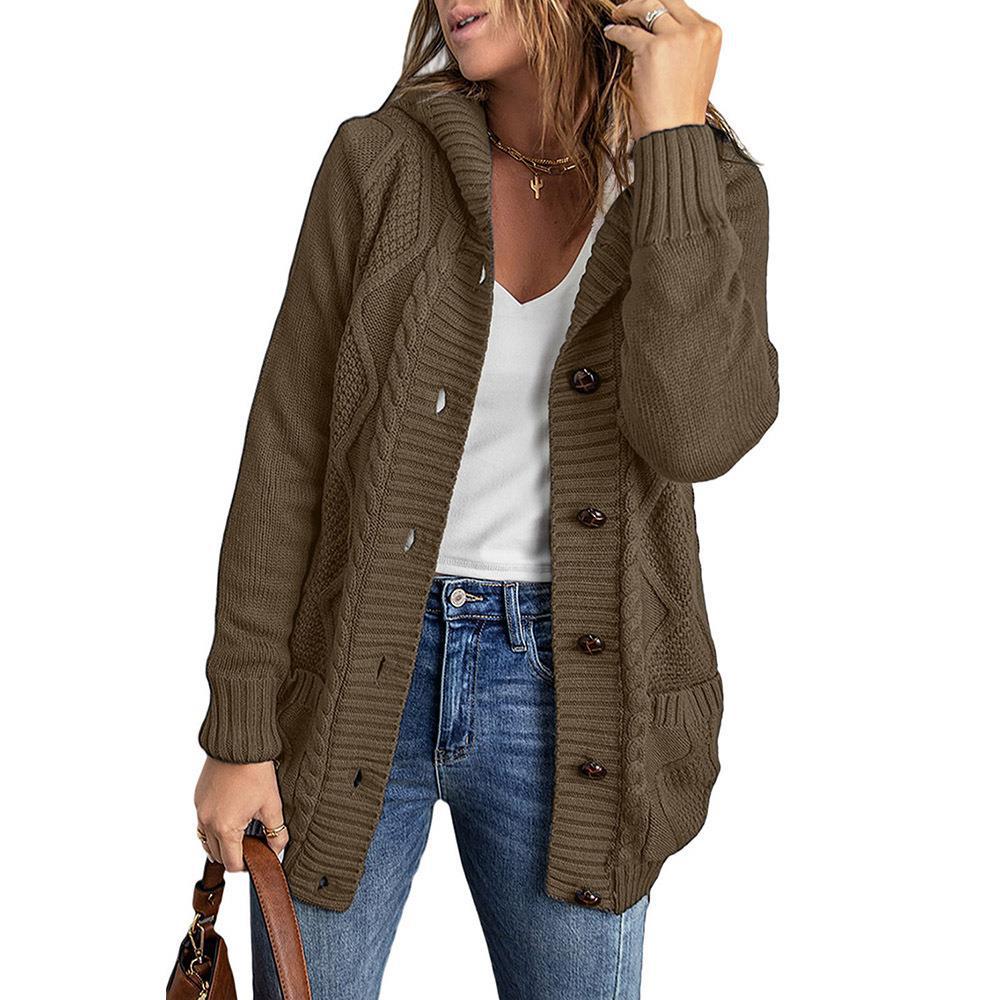Women's Winter Solid Color Mid-length Cardigan Sweater Coat