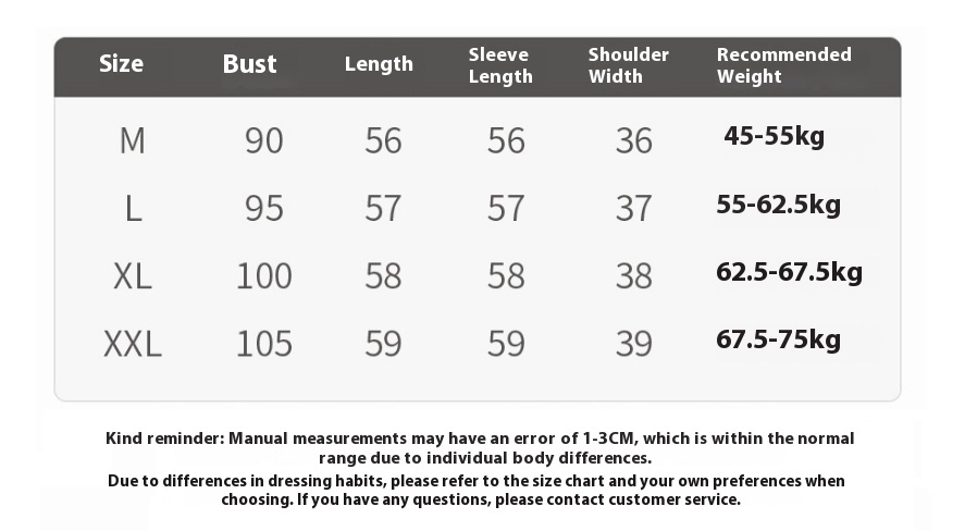 Note:1. Asian sizes are 1 to 2 sizes smaller than European and American people. Choose the larger size if your size between two sizes. Please allow 2-3cm differences due to manual measurement. 2. Please check the size chart carefully before you buy the item, if you don't know how to choose size, please contact our customer service. 3.As you know, the different computers display colors differently, the color of the actual item may vary slightly from the following images.