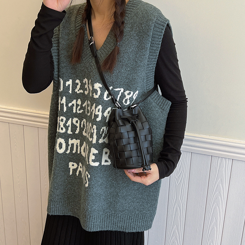 Women's Woven Bucket Shoulder Bag