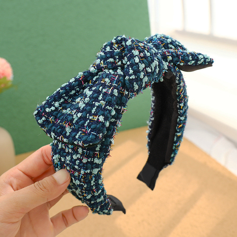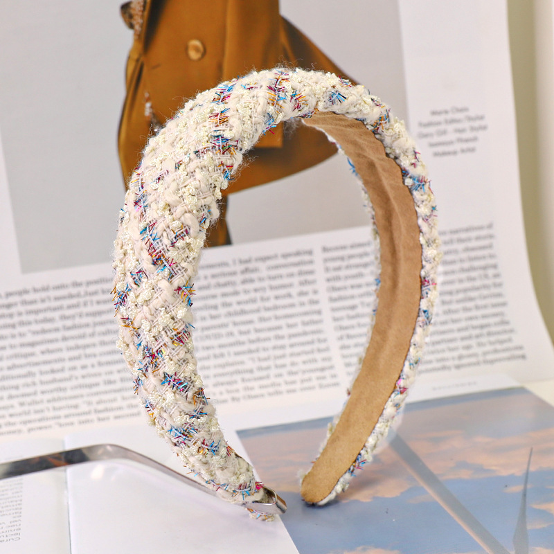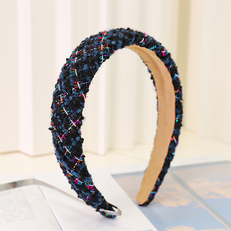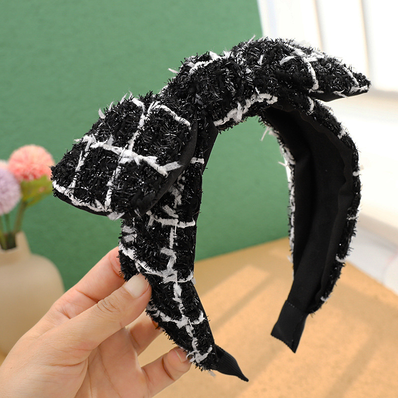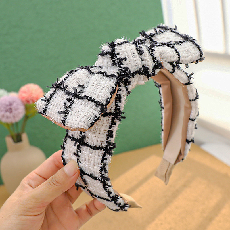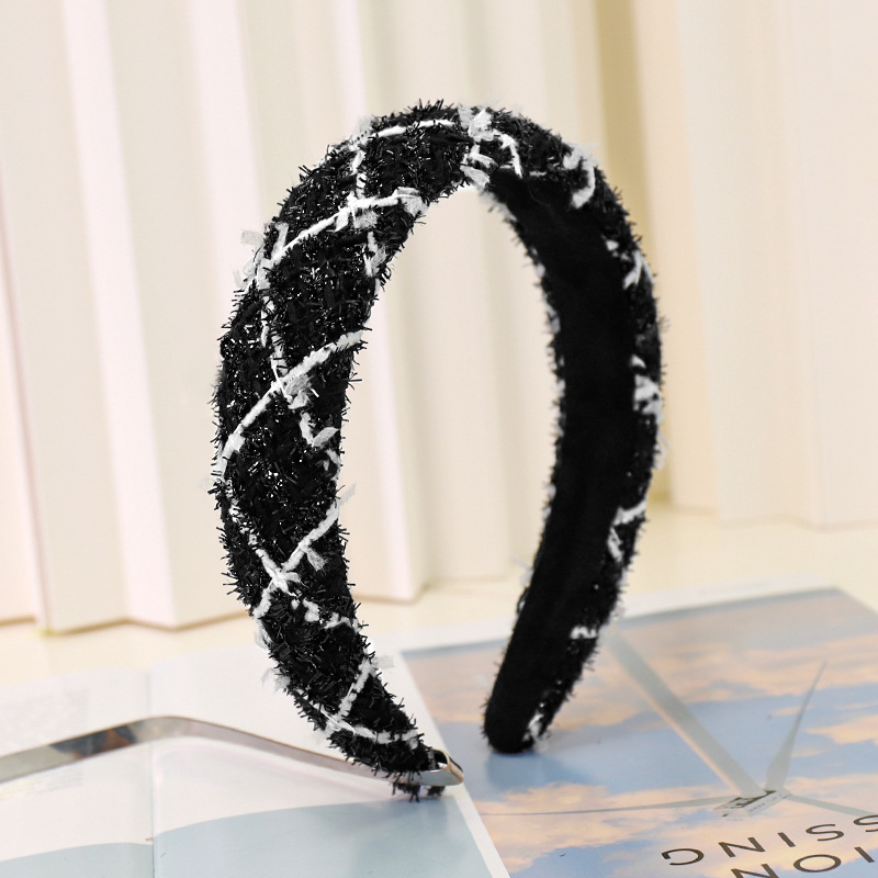 Color: Black+white plaid knitted sponge headband, royal blue knitted plaid knitted sponge headband, white+black plaid knitted sponge headband, blue knitted plaid sponge headband, beige knitted plaid sponge headband, white knitted Plaid Sponge Hairband