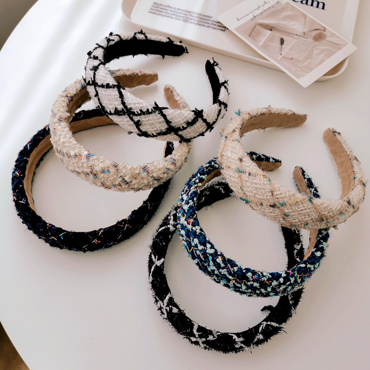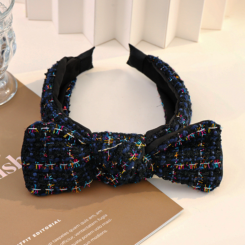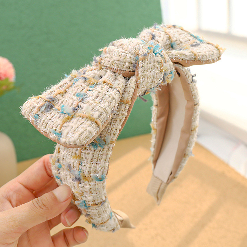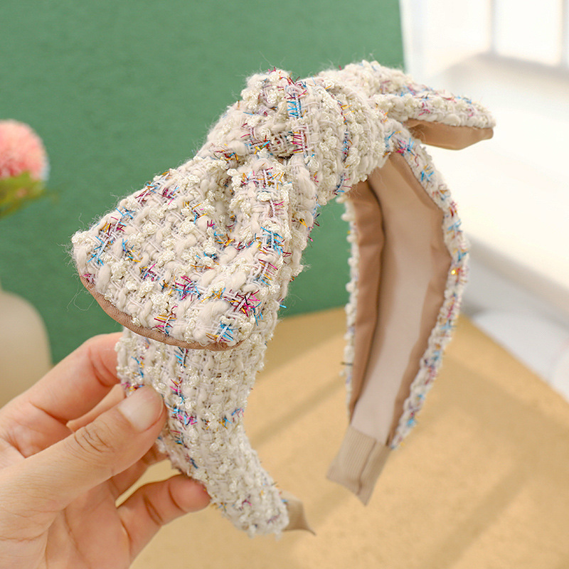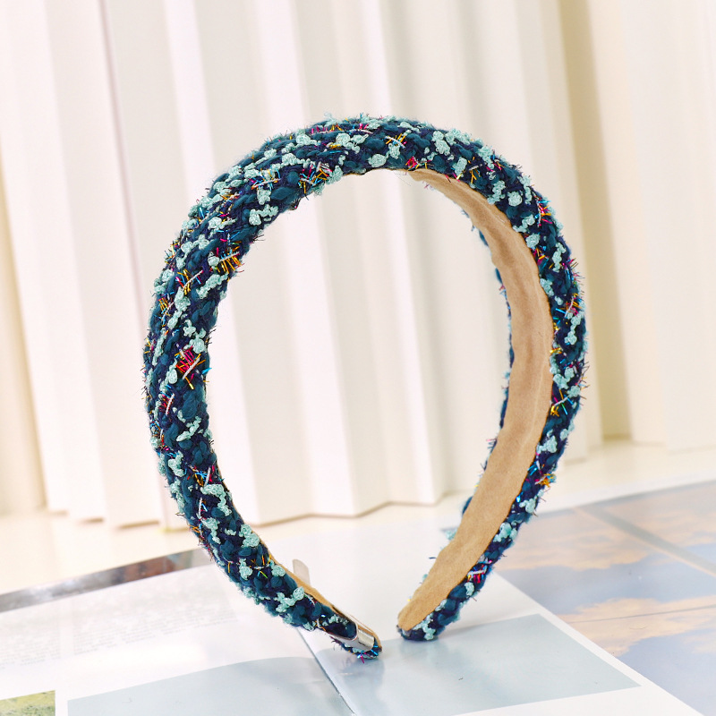 Color: Black+white plaid knitted sponge headband, royal blue knitted plaid knitted sponge headband, white+black plaid knitted sponge headband, blue knitted plaid sponge headband, beige knitted plaid sponge headband, white knitted Plaid Sponge Hairband
