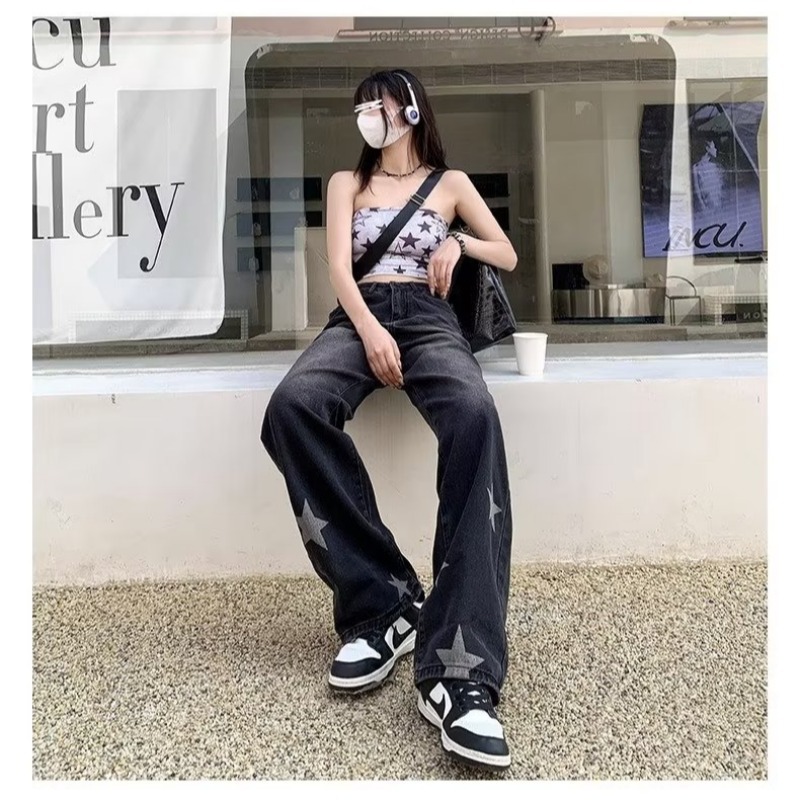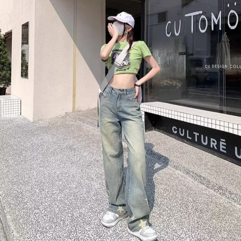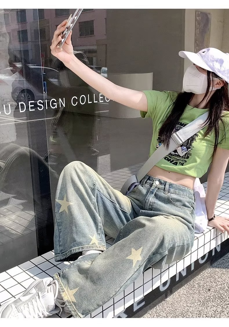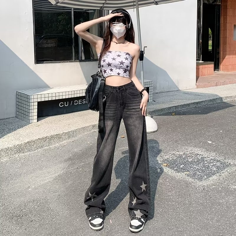 Women's XINGX Printed Wide Leg Loose Straight Jeans