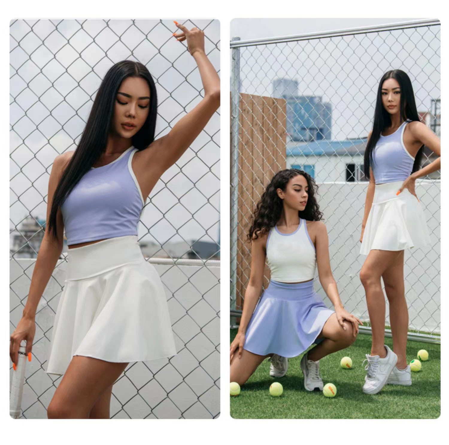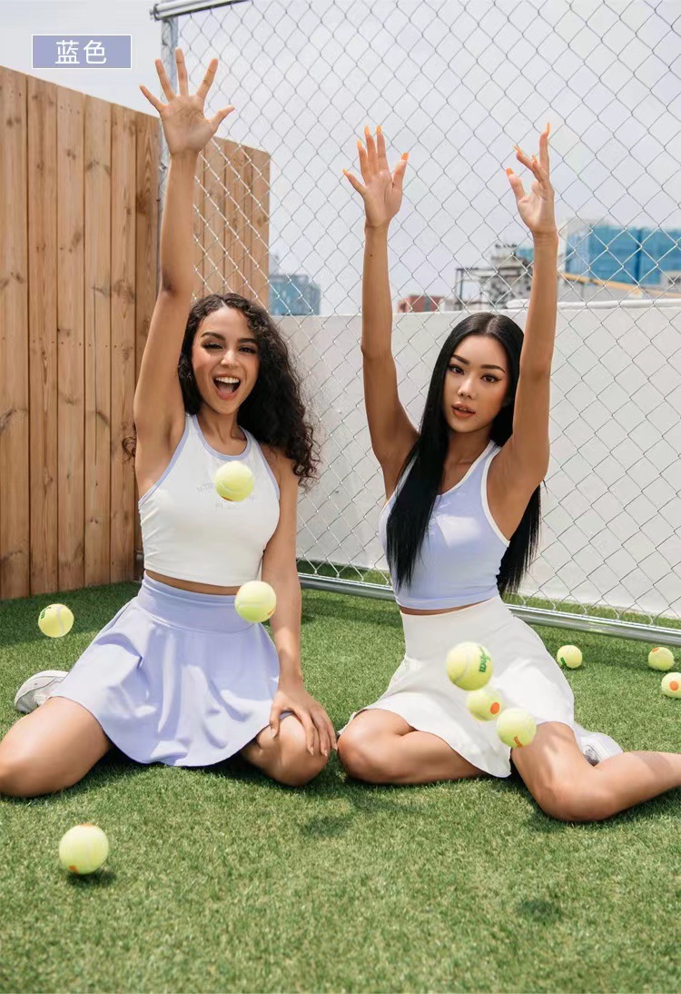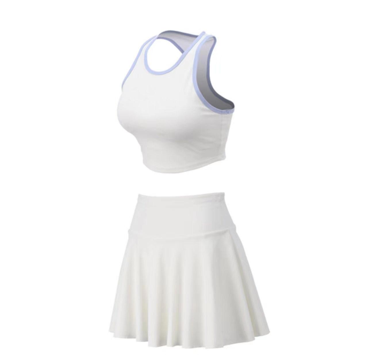 Color: White top, blue top, white skirt, blue skirt, white suit, blue suit, white top with blue skirt, blue top with white skirt