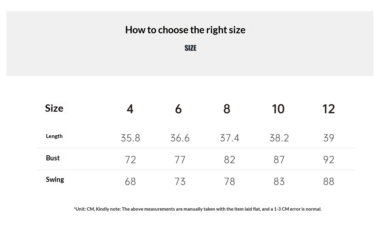 Sizes: 4, 6, 8, 10, 12