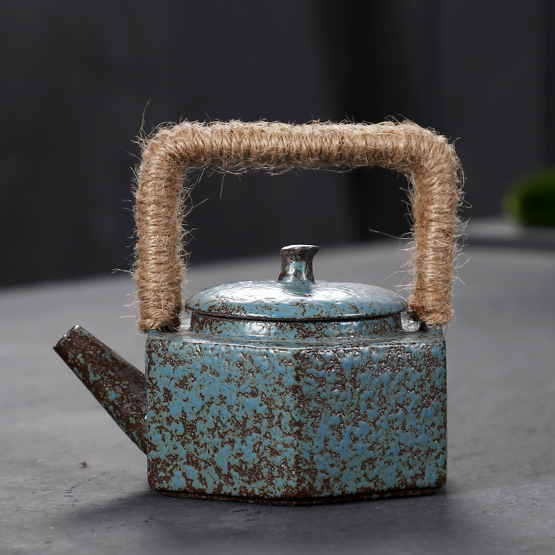 Wood-fired Kung Fu Teapot, Ceramic Stoneware Pot With Beam, Hexagonal Pot
